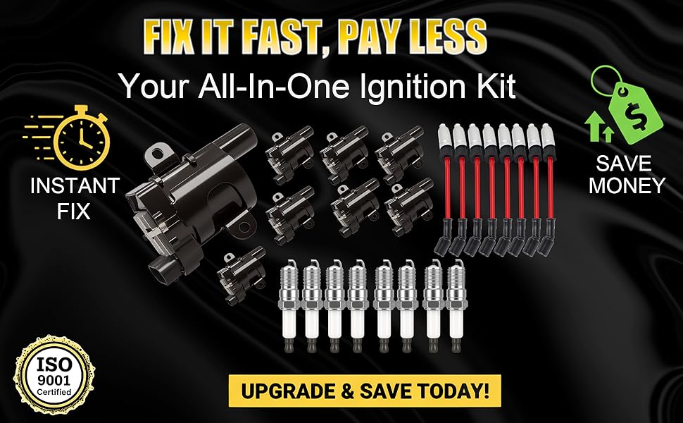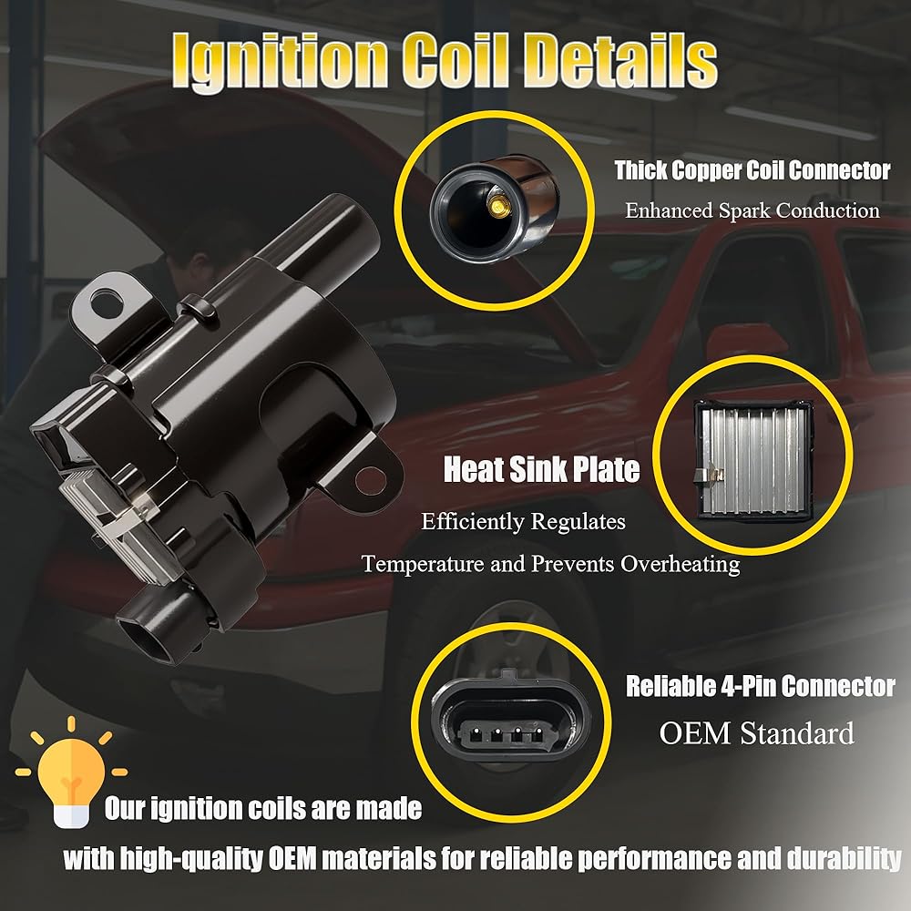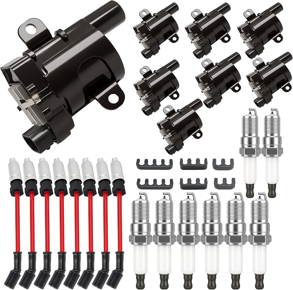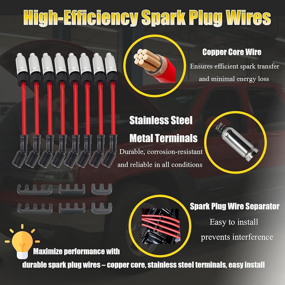 حزمة ملفات الإشعال المستديرة UF262 / شمعات إشعال إيريديوم مزدوجة / أسلاك توصيل الإشعال لسيارة Chevy Avalanche Express Tahoe Silverado Suburban 1500 HD GMC Savana Sierra Yukon HUMMER H2 V8 4.8L 5.3L 6L 8PSC