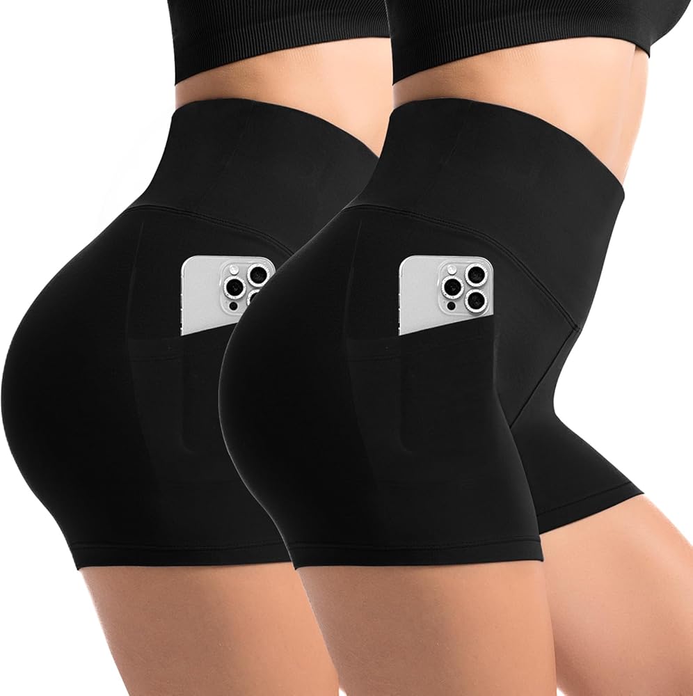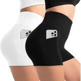 شورت CADITEX لراكبي الدراجات النارية مع جيوب للنساء، قطعتان من شورتات اليوجا عالية الخصر من الألياف اللدنة