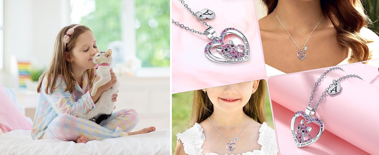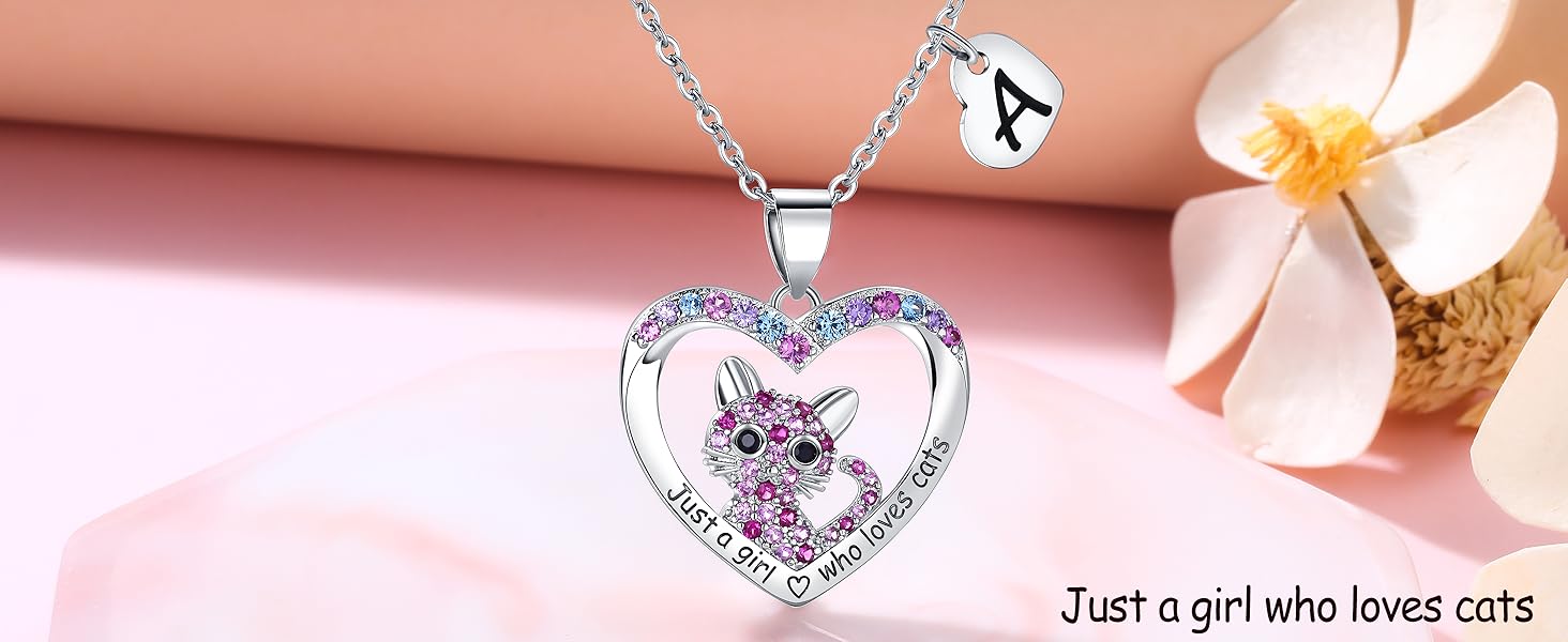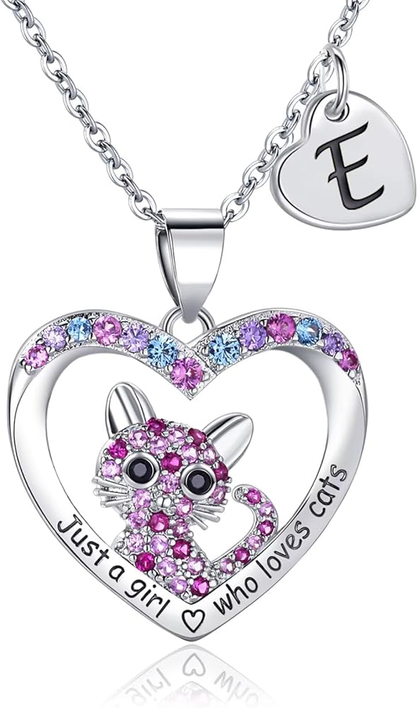❤قلادة قطة أولية❤قلادة Just A Girl Who Loves Cats مخصصة لمحبي القطط. تصميم قطة لطيف للابنة والحفيدة والفتيات والأطفال.