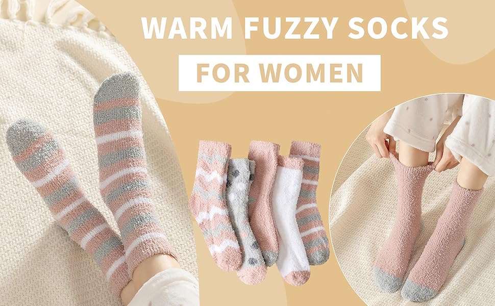Great Gift for Lover: 5 pairs, assorted colors. These womens fuzzy socks are ideal for birthdays, Christmas - practical, warm, a sweet gesture.