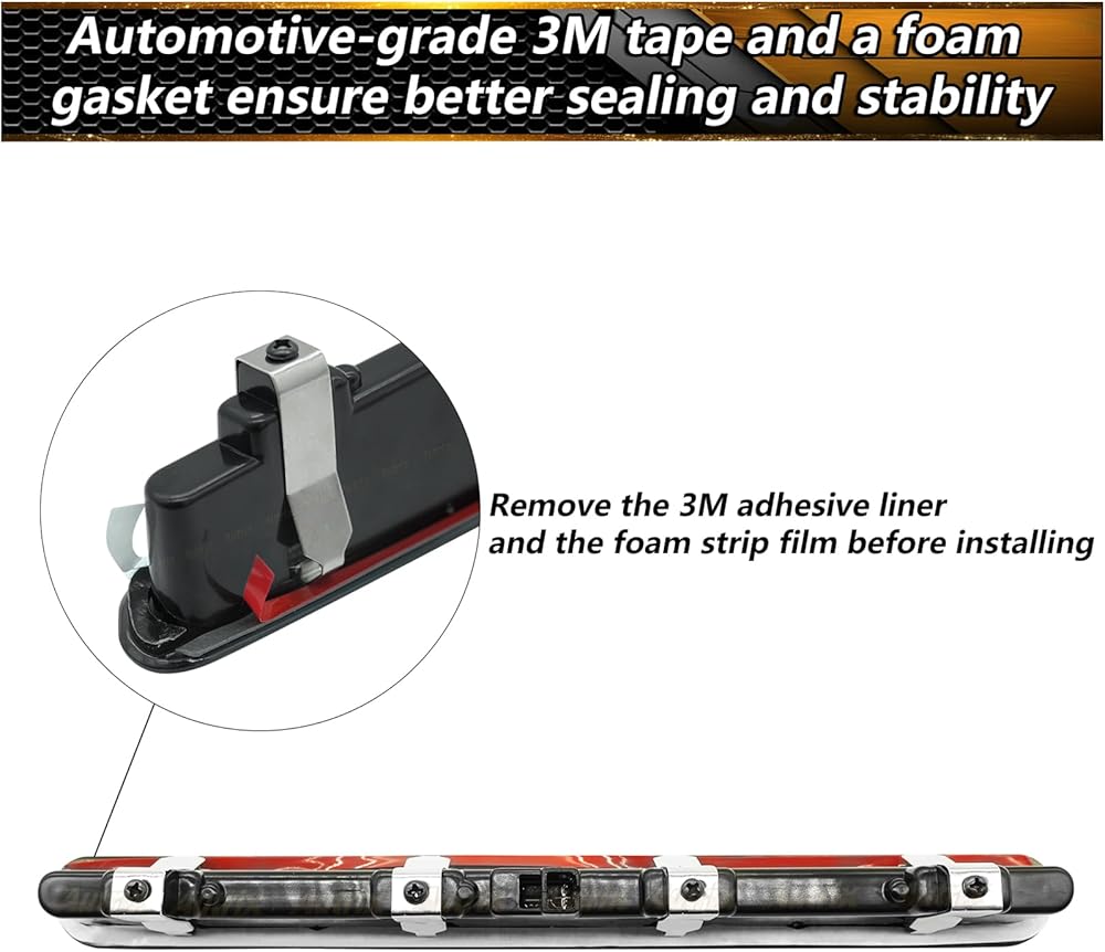 أكثر سطوعًا وأسرع: ينتج ضوء الفرامل الثالث عالي التثبيت توهجًا موحدًا لشريط الضوء واستجابة تشغيل/إيقاف أسرع من الهالوجين الذي يستخدم رقائق LED عالية الطاقة، وأكثر سطوعًا من المصابيح العادية لرؤية أفضل، ويمكن أن يساعد السائقين التاليين على التفاعل بشكل أسرع. ويتخلص من الضوء الخافت من الآن فصاعدا.
