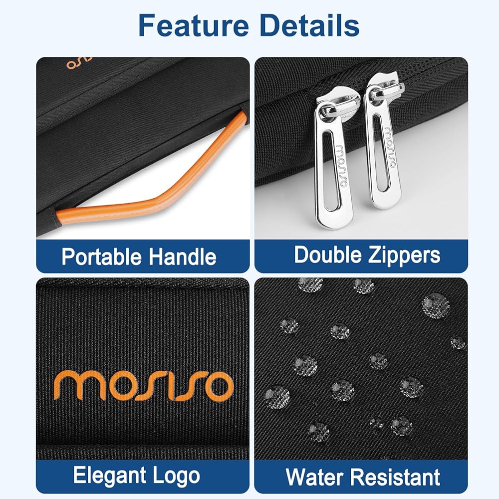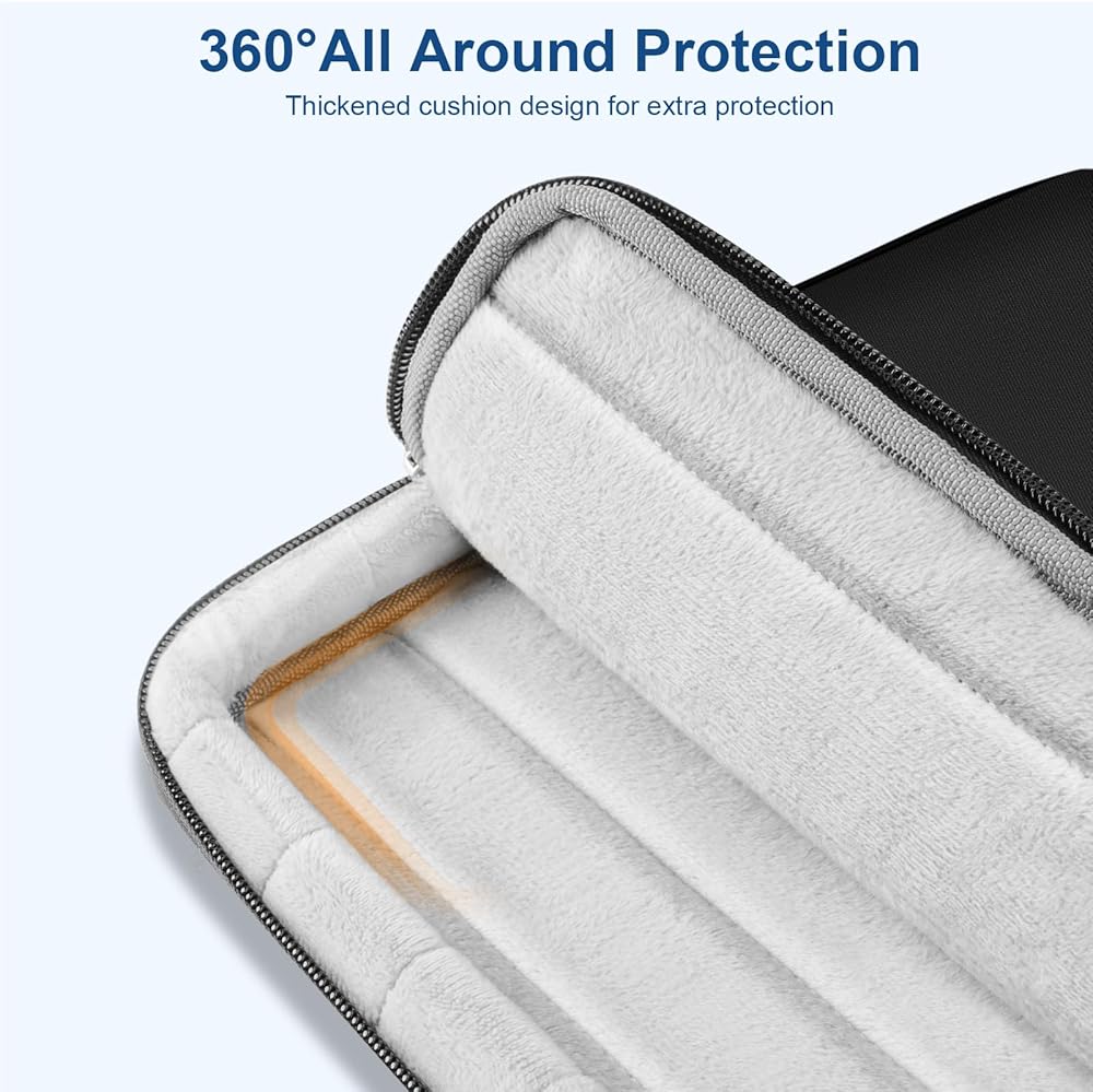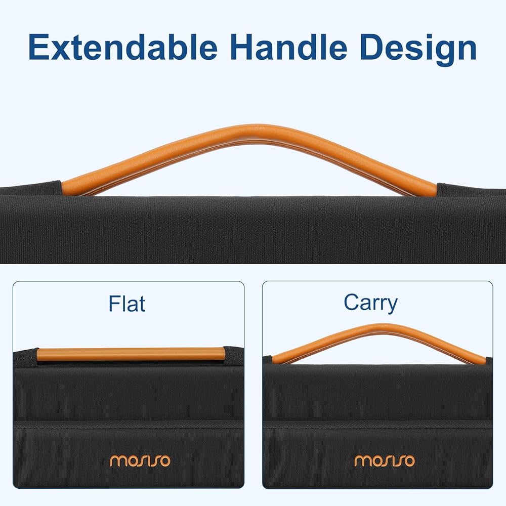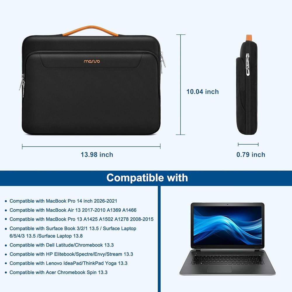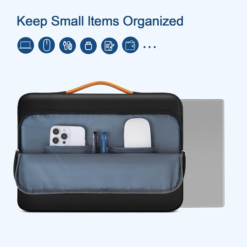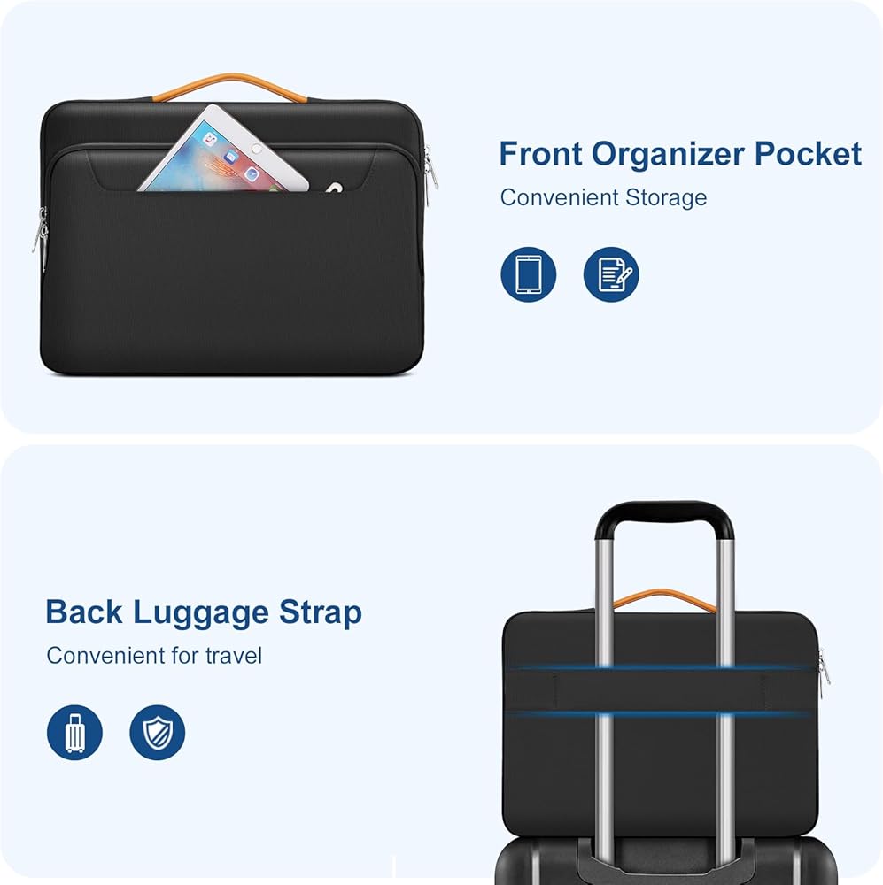 حقيبة حمل ذات حافة داخلية معززة وواقية بزاوية 360 درجة تحمي الكمبيوتر المحمول الخاص بك من أي سقوط عرضي. تصميم المقبض القابل للتمدد يجعله يحمل الكمبيوتر المحمول الخاص بك بشكل مريح، ويمكنك أيضًا إزالة المقبض. تصميم بسحاب جانبي مفتوح، لتجنب السقوط العرضي لجهاز الكمبيوتر المحمول الخاص بك أثناء الحمل. يوفر الجيبان الأماميان المزودان بسحاب مساحة كافية للاحتفاظ بالماوس وسماعات الأذن والأقلام ودفاتر الملاحظات، مما يوفر المزيد من الراحة.
