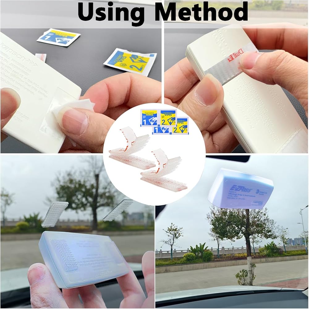4 قطع (مجموعتان) شرائط تثبيت EZ Pass لسيارات EZ Pass/IPass/IZoom/Sunpass/EZPass حامل مستجيب للزجاج الأمامي، حامل مستجيب قابل لإعادة الإغلاق، شرائط قفل مزدوجة مع لاصق