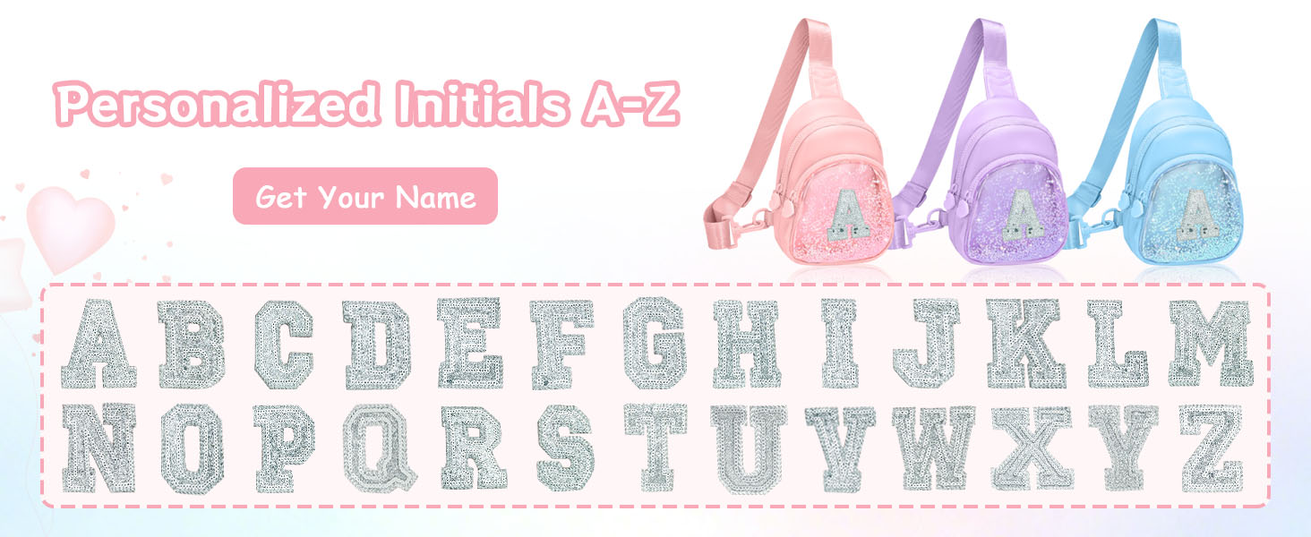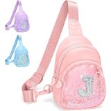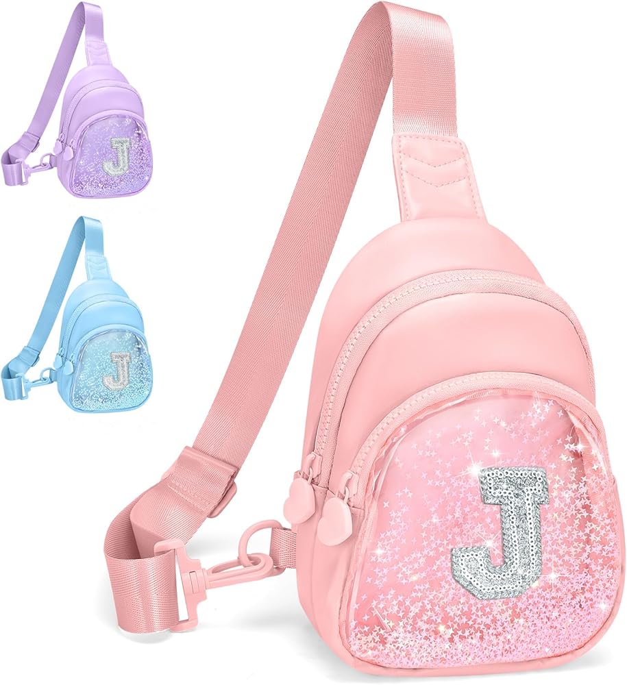 حقيبة حبال أولية لامعة للفتيات المراهقات مع حزام قابل للتعديل 24 بوصة - 41 بوصة، هدية عيد ميلاد أشياء عصرية للفتيات من سن 6 إلى 14 عامًا، حقيبة كروس شخصية للأطفال، أرجوانية مع حرف L in Kuwait