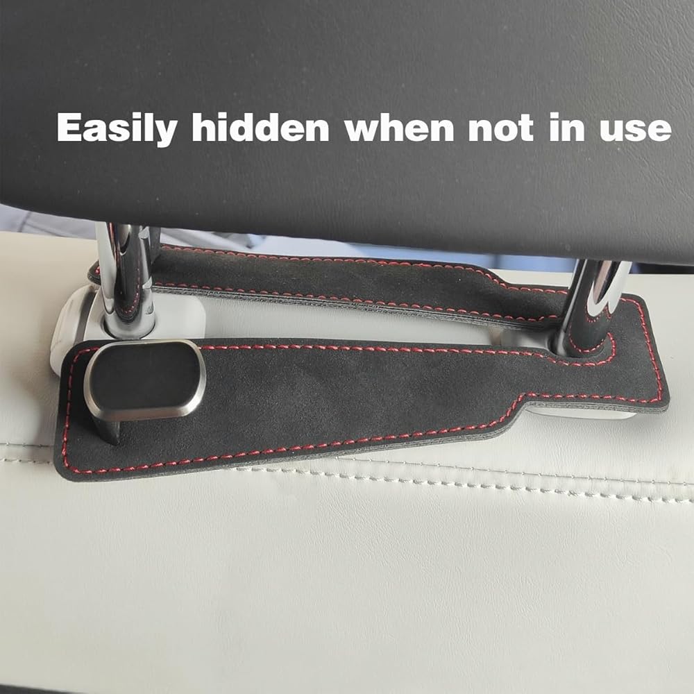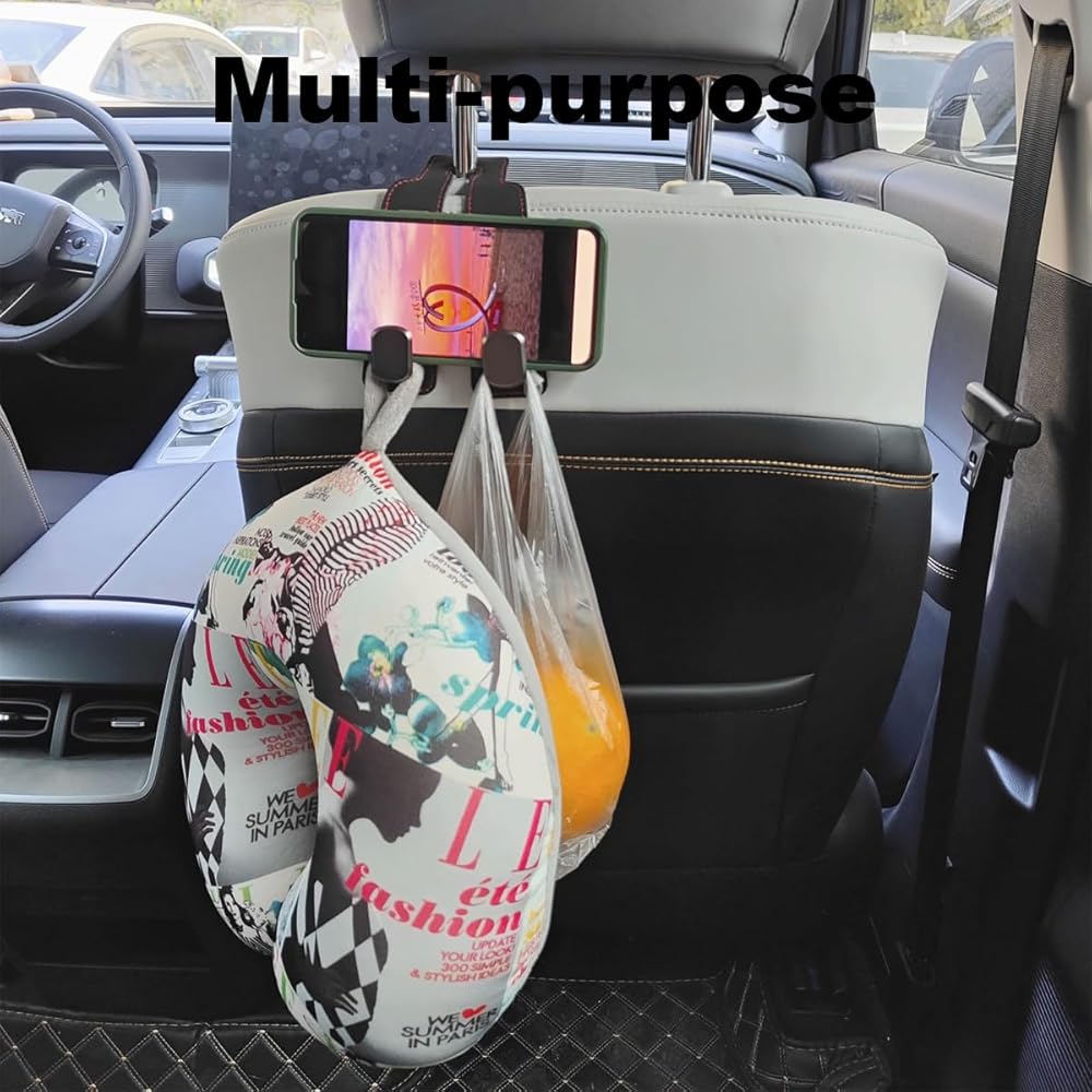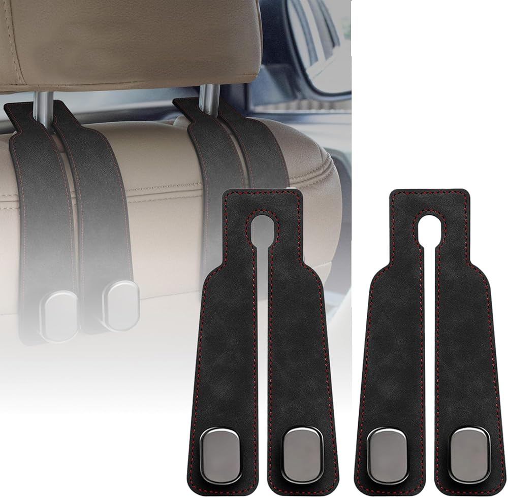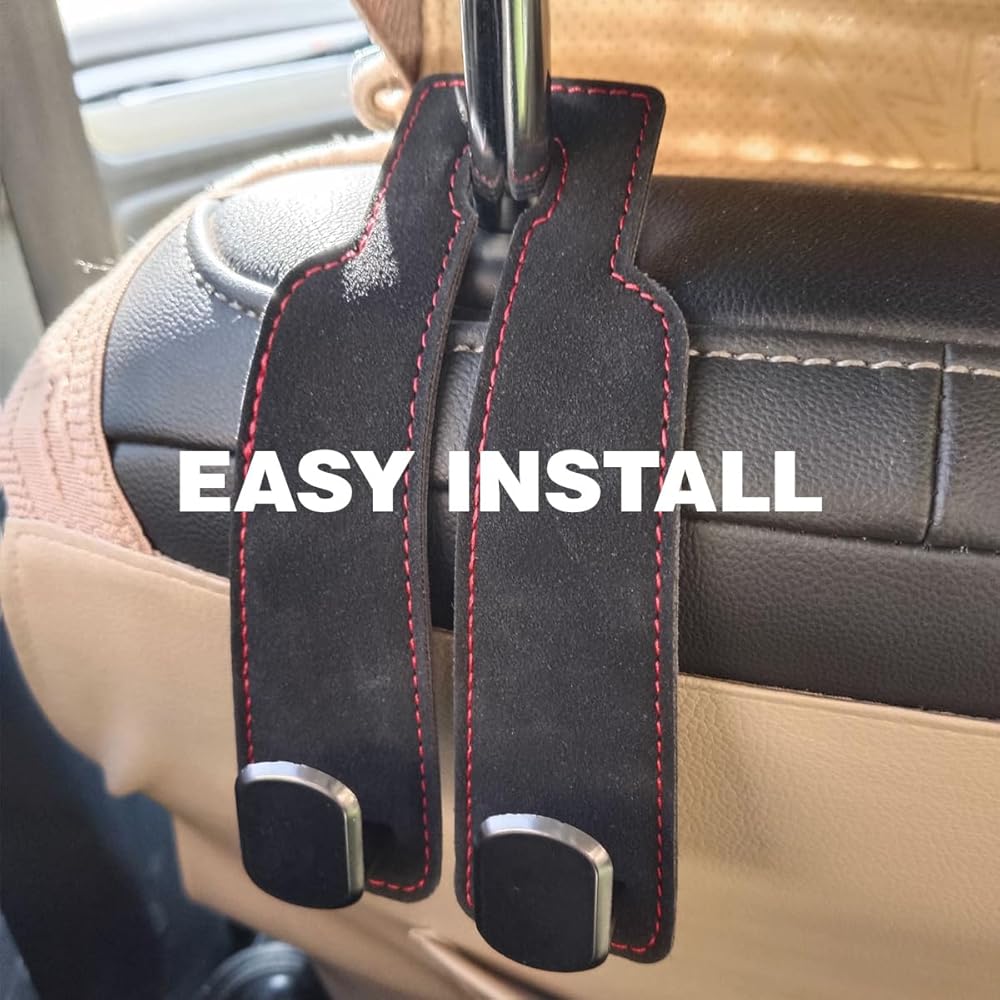 Transform your vehicle into a neater, safer and more organized space with our 2-Pack Leather Car Headrest Hooks -- the simple, stylish solution for keeping purses, bags, groceries, bottles and phones off the floor and within easy reach. Each hook combines a reinforced ABS hook with a premium leather strap for a clean, upscale look that complements any interior while delivering everyday durability. Designed for busy commuters, parents on-the-go, rideshare drivers, and anyone who hates clutter, these car headrest hooks turn unused headrest poles into instant storage.