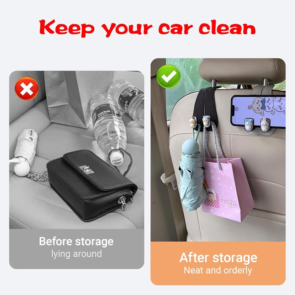 Included in the box: 2 * Leather Car Headrest Hooks -- everything you need to declutter your ride and upgrade your car organization in seconds.