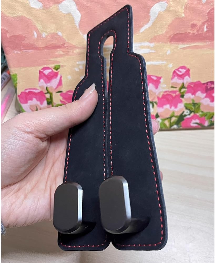Built for real life: the engineered ABS hanging area resists bending and wear, and the leather strap is scratch-resistant so your seats stay looking new. Each hook is rated to support up to 25 lbs, so you can confidently hang heavier items like full grocery bags, backpacks, or insulated lunch totes. The double-hook style (two hanging points per unit) increases stability and helps balance weight so items don't swing wildly during turns.