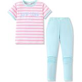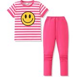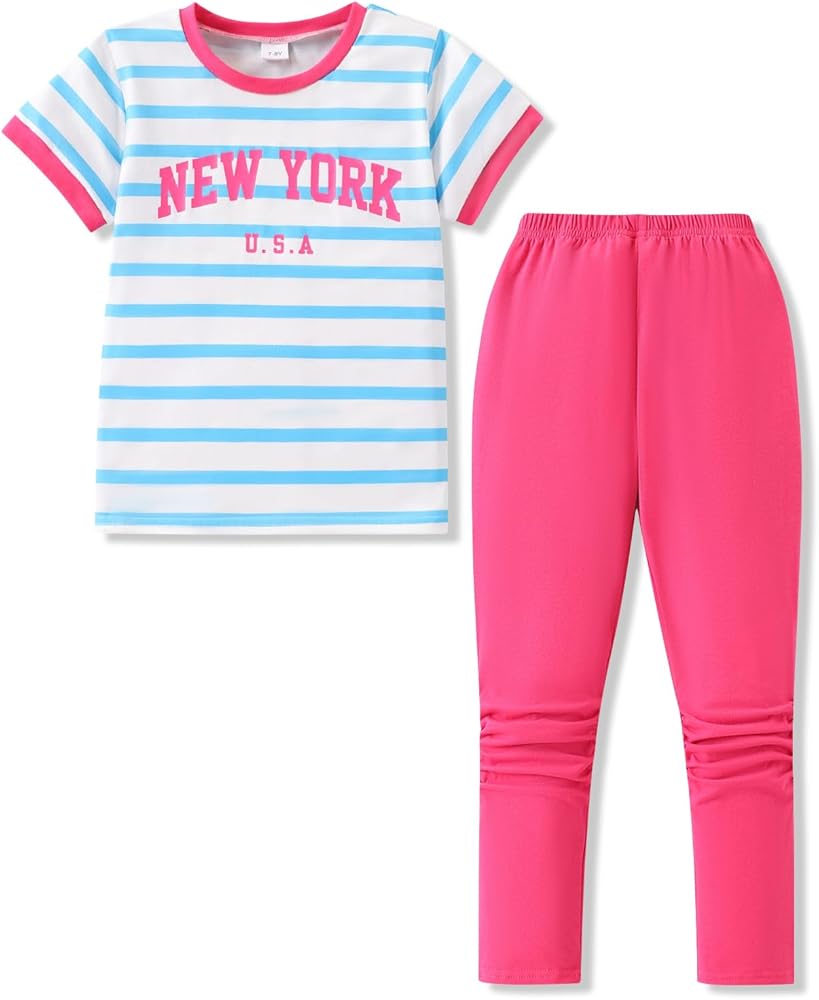 Girls Clothes 2 Piece Outfit Striped Color Blocking Short Sleeve Top and Leggings Pants Summer Clothing Sets Size 7-11, Back To School, College Style