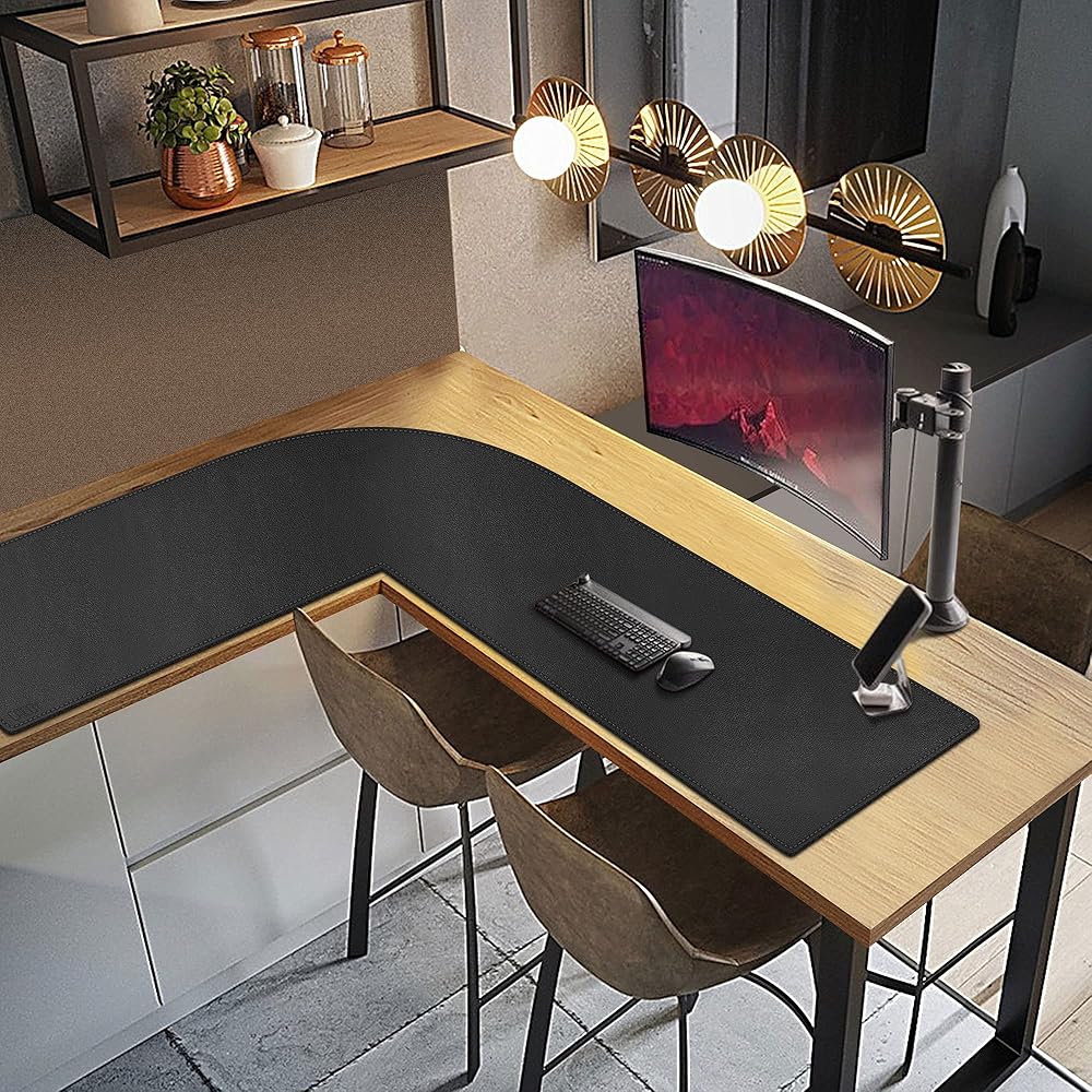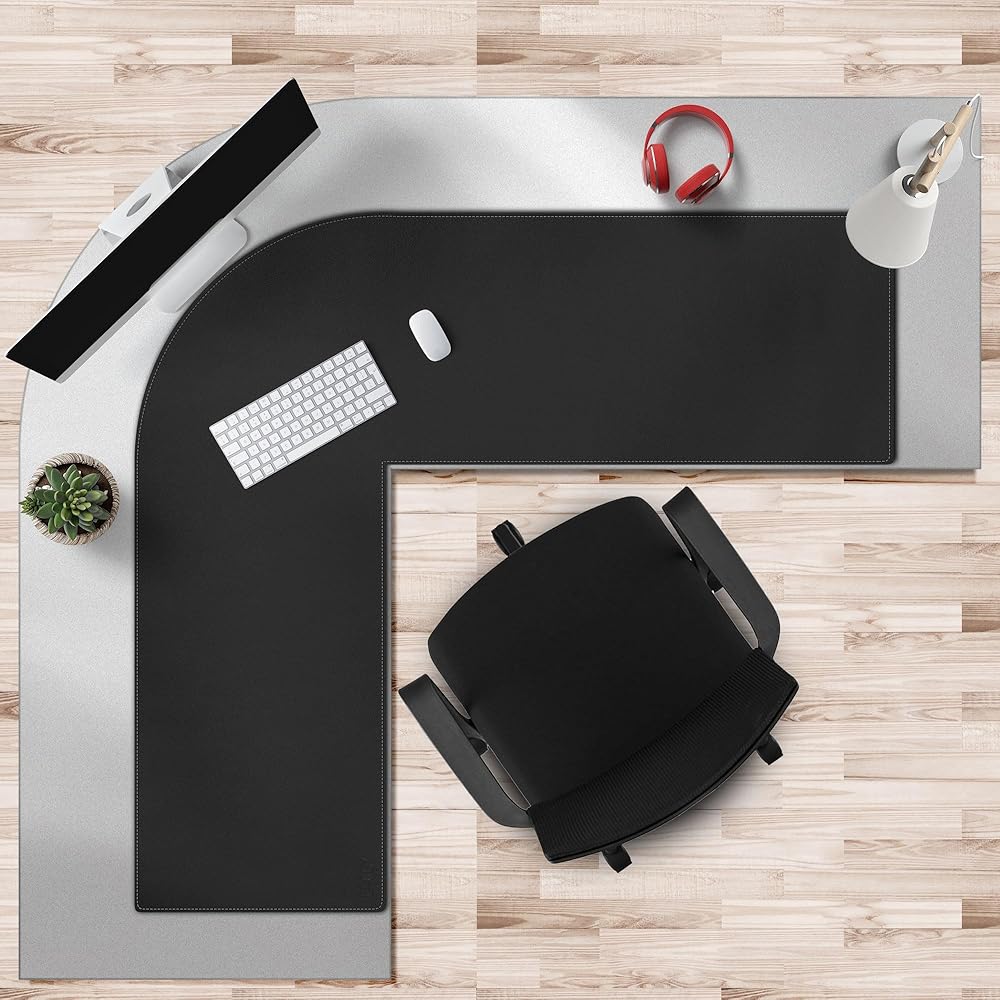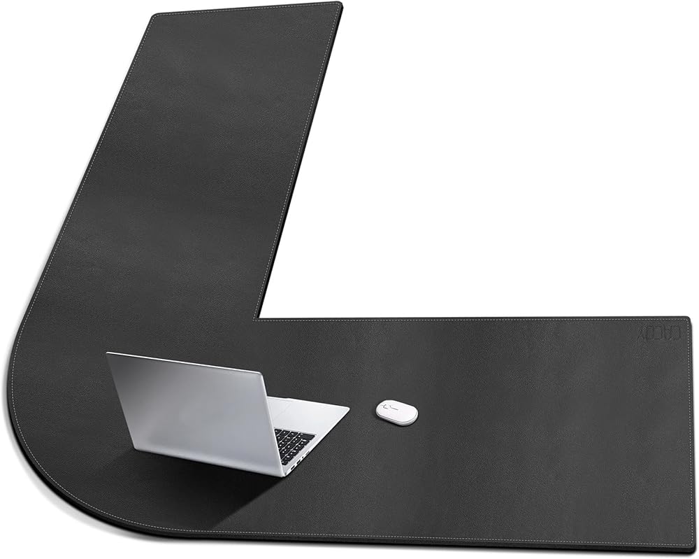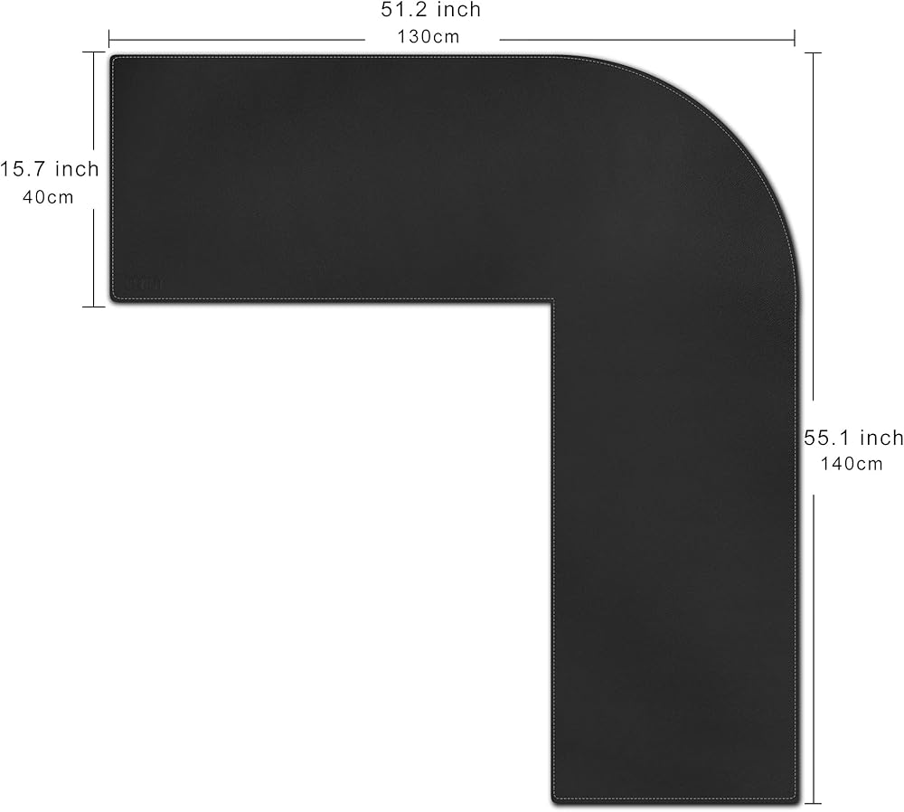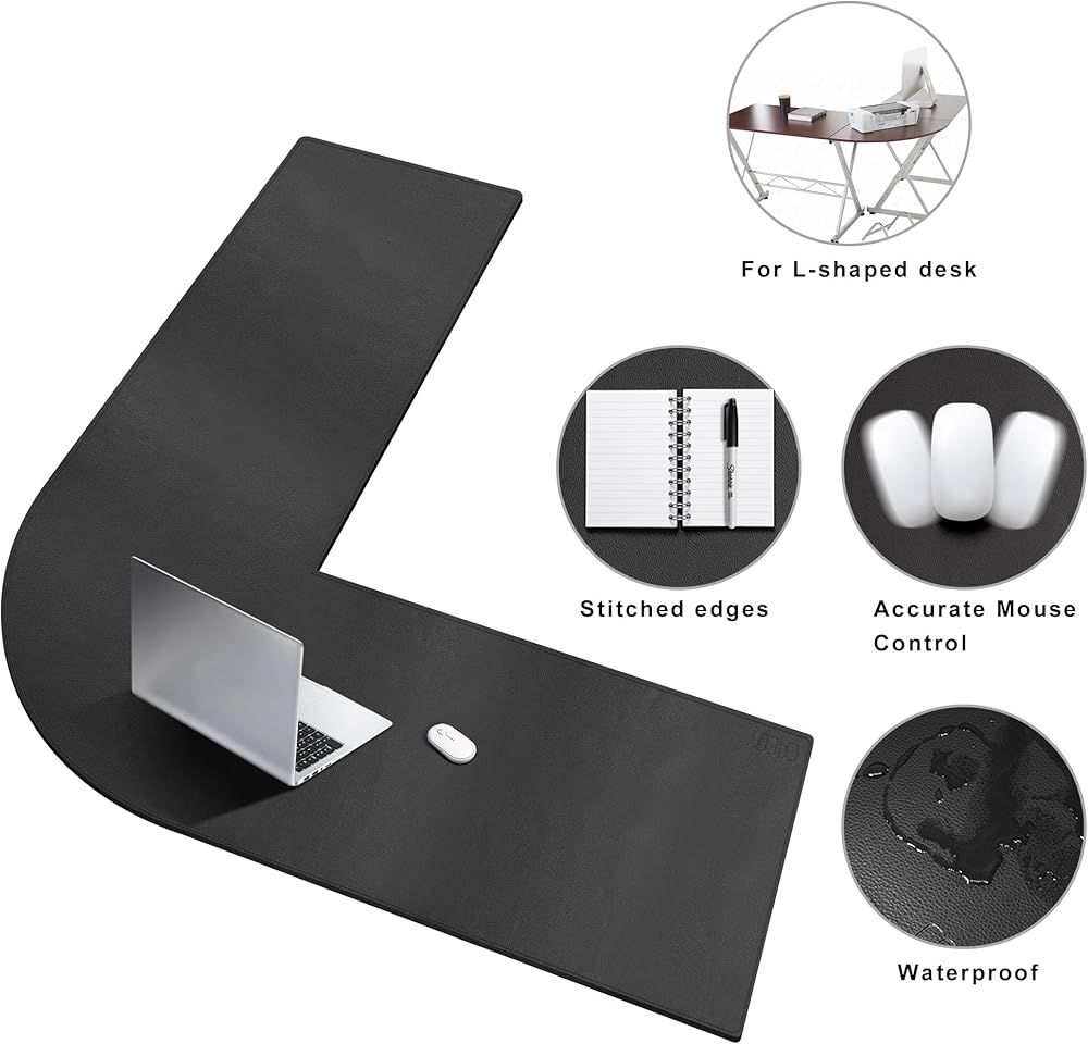 سجادة مكتب على شكل حرف L من Cacoy مقاس 51 بوصة × 55 بوصة، نشافات وسادة مكتب زاوية من جلد البولي يوريثان، لوحة ماوس كبيرة على شكل حرف L للمكتب، سجادات مكتب كمبيوتر مكتبية مقاومة للماء على الجزء العلوي من المكاتب، أسود