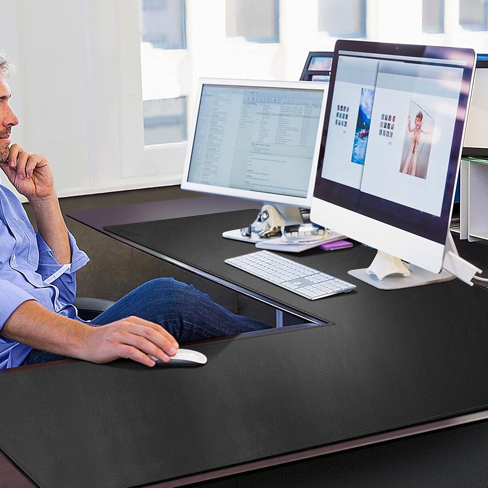 【تصميم على شكل حرف L】مريحة وأنيقة، تناسب وسادة مكتب الكمبيوتر الزاوية هذه بسهولة أعلى المكاتب ومساحات العمل على شكل حرف L. كبيرة بما يكفي لحمل شاشتي الكمبيوتر والكمبيوتر المحمول الخاص بك، والحفاظ على سطح المكتب نظيفًا ومنظمًا.