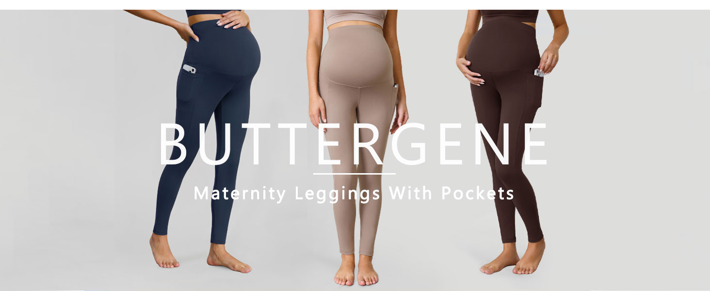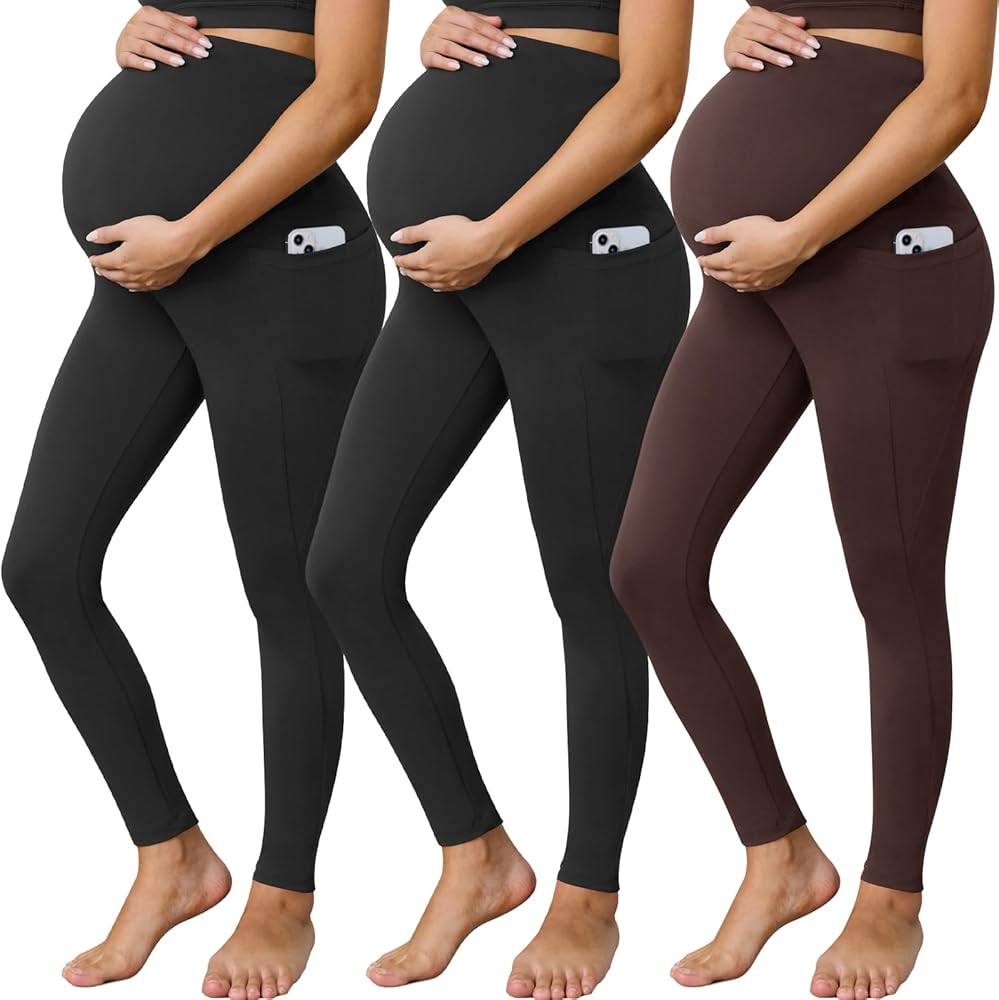 مجموعة من 3 سراويل نسائية للحمل من Buttergene مع جيوب فوق البطن، سراويل يوجا للحمل in Kuwait