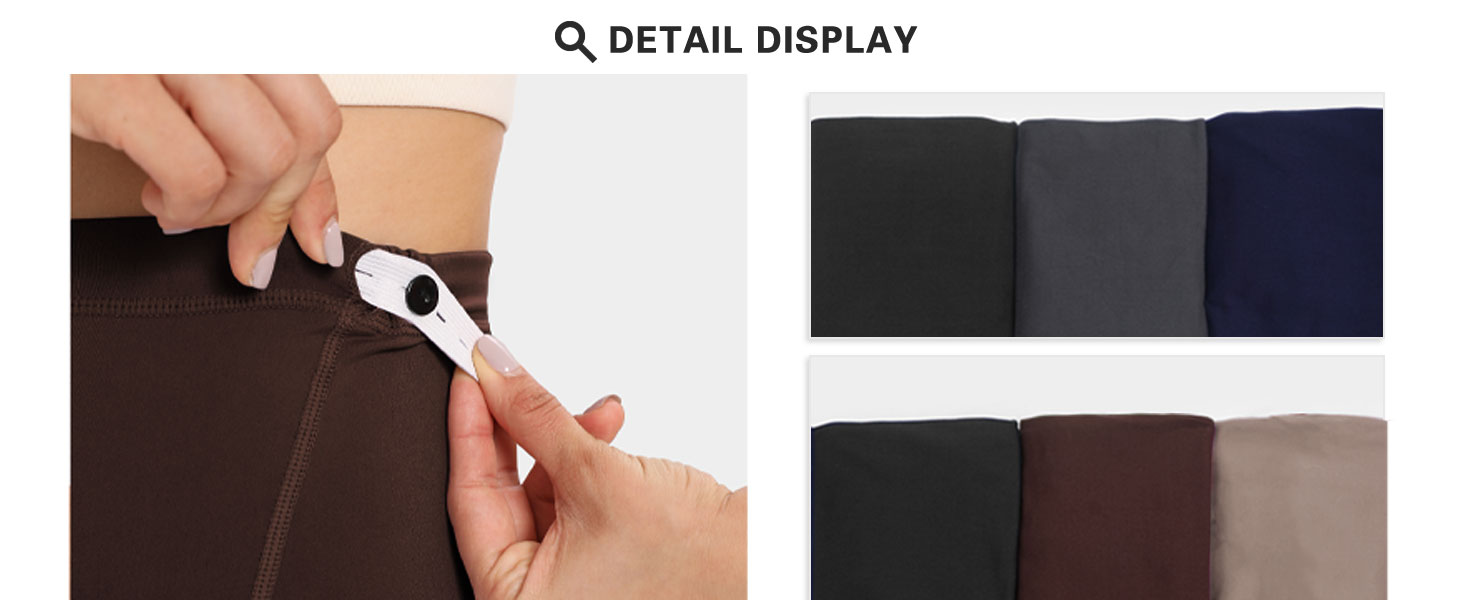 • زر مدمج: تحتوي السراويل الضيقة على زر تثبيت مدمج في الأعلى لجعلها أصغر قليلاً إذا لزم الأمر.