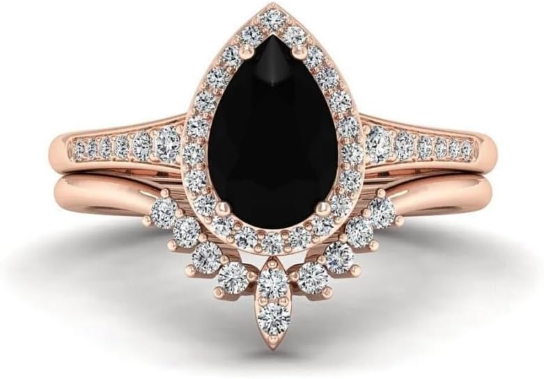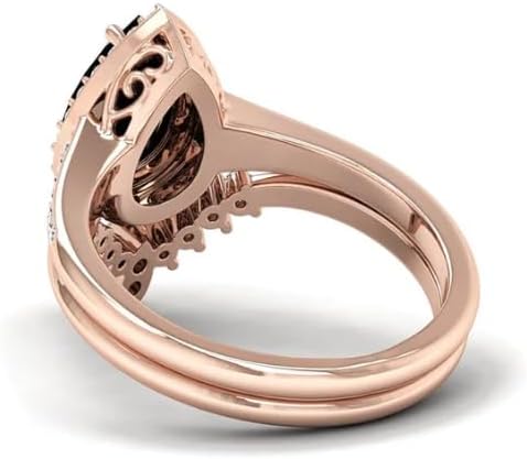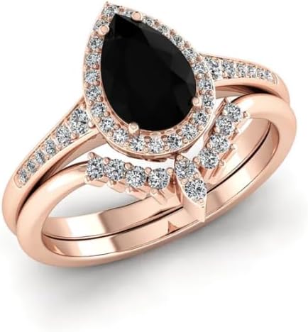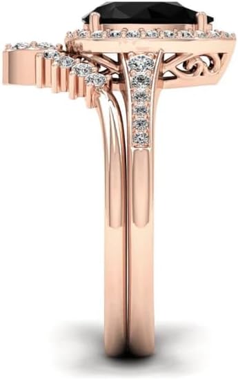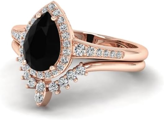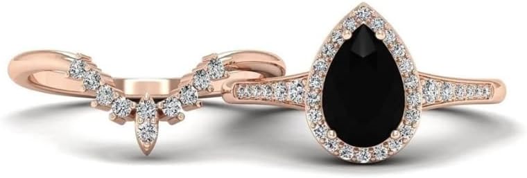 مجموعة خواتم خطوبة من الألماس الأسود على شكل كمثرى 3 قيراط للنساء | تخريمية خمر العتيقة هالة خاتم الزواج | مجوهرات مويسانيتي/أونيكس مصنوعة يدويًا | خاتم الذكرى الفضية/الذهبية لها/الهدايا
