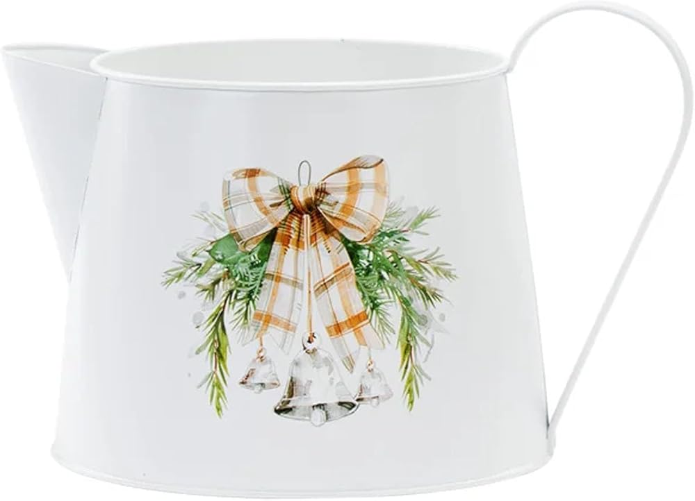 إبريق معدني منقوش للعطلات من Napco - وعاء زراعة عيد الميلاد المزخرف بطول 15.24 سم، مزهرية زهور بيضاء على طراز المزرعة لديكور المنزل الاحتفالي