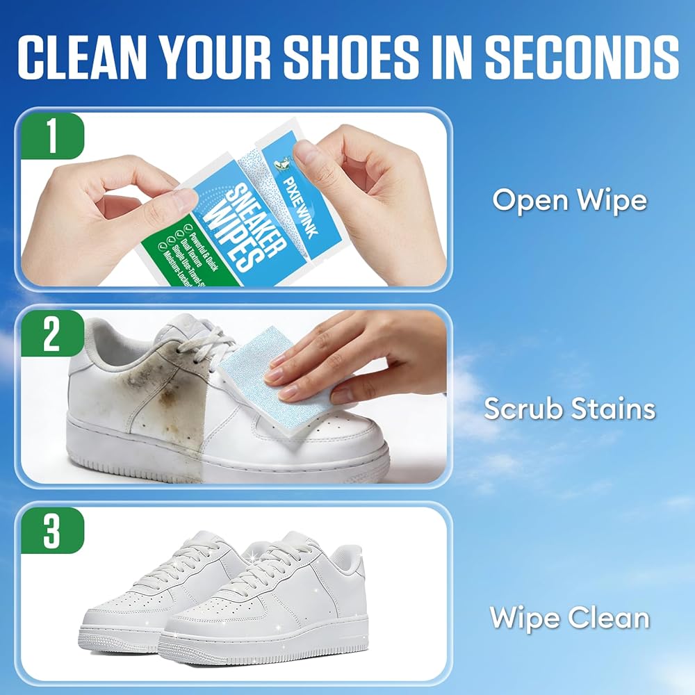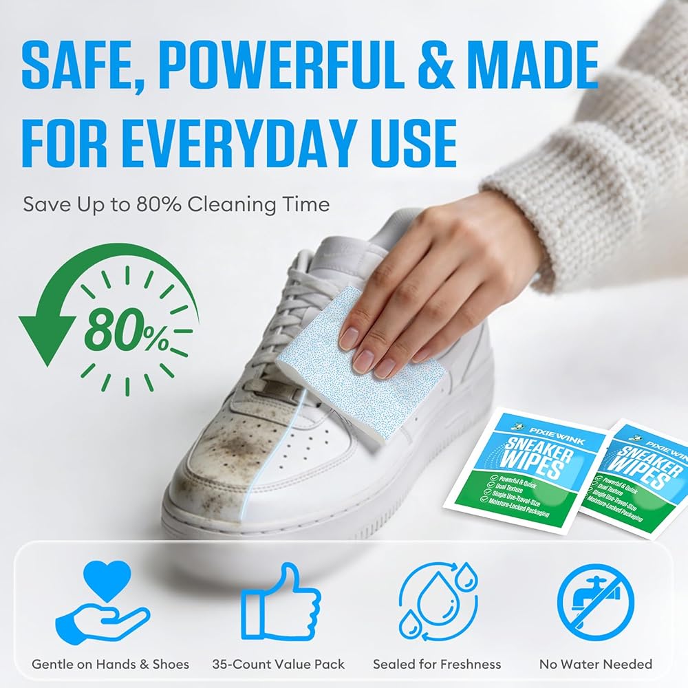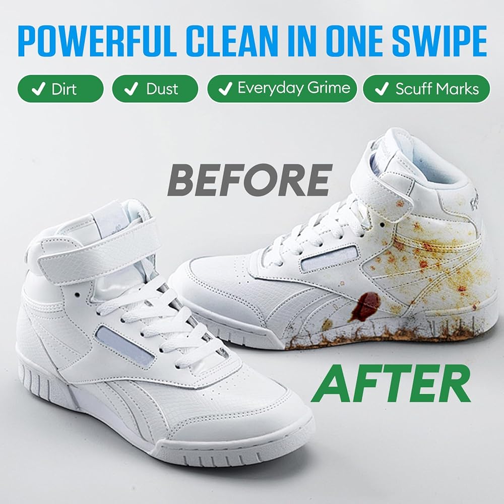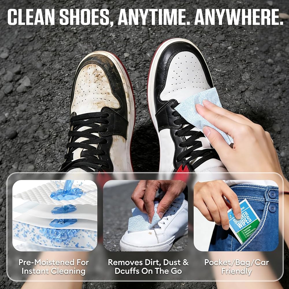 تنظيف سريع بدون ماء أثناء التنقل - مناديل الأحذية الرياضية المبللة مسبقًا تزيل البقع في ثوانٍ بدون فرشاة أو شطف أو وقت تجفيف. مثالي للرياضيين والمسافرين ورواد صالة الألعاب الرياضية والطلاب وأي شخص لديه نمط حياة مزدحم.