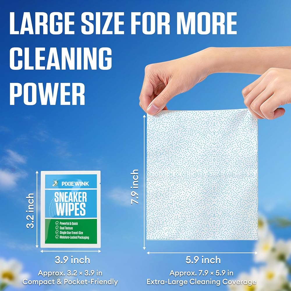 تركيبة كبيرة وسميكة وآمنة - كل منديل مقاس 15.24 سم × 25.4 سم سميك ومتين وكبير بما يكفي لتنظيف زوج كامل من الأحذية. تركيبة غير دهنية ذات رائحة منعشة ولا تترك أي بقايا. لا يُنصح باستخدامه مع الجلد المدبوغ أو جلد النوبوك - قم باختباره على منطقة صغيرة أولاً.