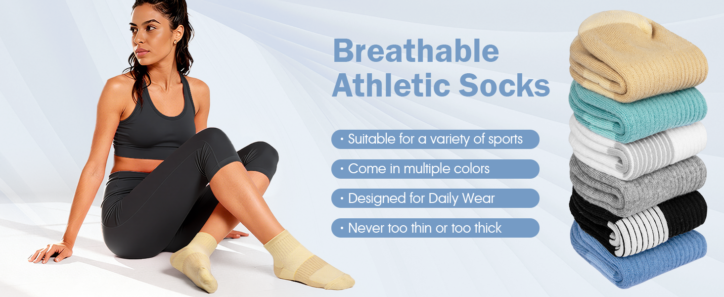 The athletic socks women available in a wide range of classic colors with a sleek, timeless style that pairs effortlessly with all footwear¡ªlow-top sneakers, skate shoes, loafers and casual shoes; It's the good choice for every occasion: daily commutes, gym sessions, outdoor walks, weekend outings and office days;