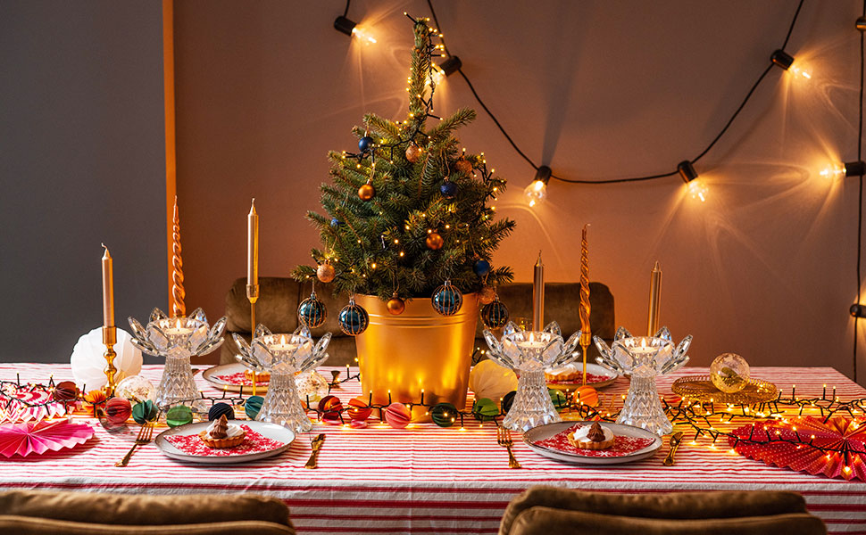 تبدو حوامل مصابيح الشاي الكريستالية مع الشموع المضيئة لامعة ومريحة وحيوية وجذابة، مما يضيف جوًا رائعًا وأنيقًا ورومانسيًا إلى مساحتك الخاصة، كما أنها زينة رائعة للشموع المركزية لعرض الطاولة، كما أنها هدية فريدة من نوعها لحامل الشموع الكريستالي للعائلة أو الأصدقاء.