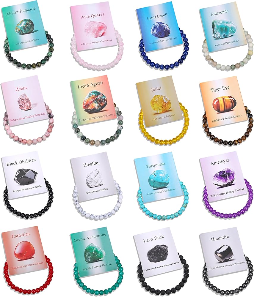 مجموعة أساور كريستال: 16 قطعة من أساور الكريستال العلاجية في مجموعة. هذه الأساور المصنوعة من الأحجار الكريمة ليست فقط إكسسوارات أنيقة ولكنها تحمل أيضًا خصائص إيجابية. كل أساور نسائية مطرزة لها روحانية خاصة وتجلب لك تأثيرات علاجية مختلفة للطاقة