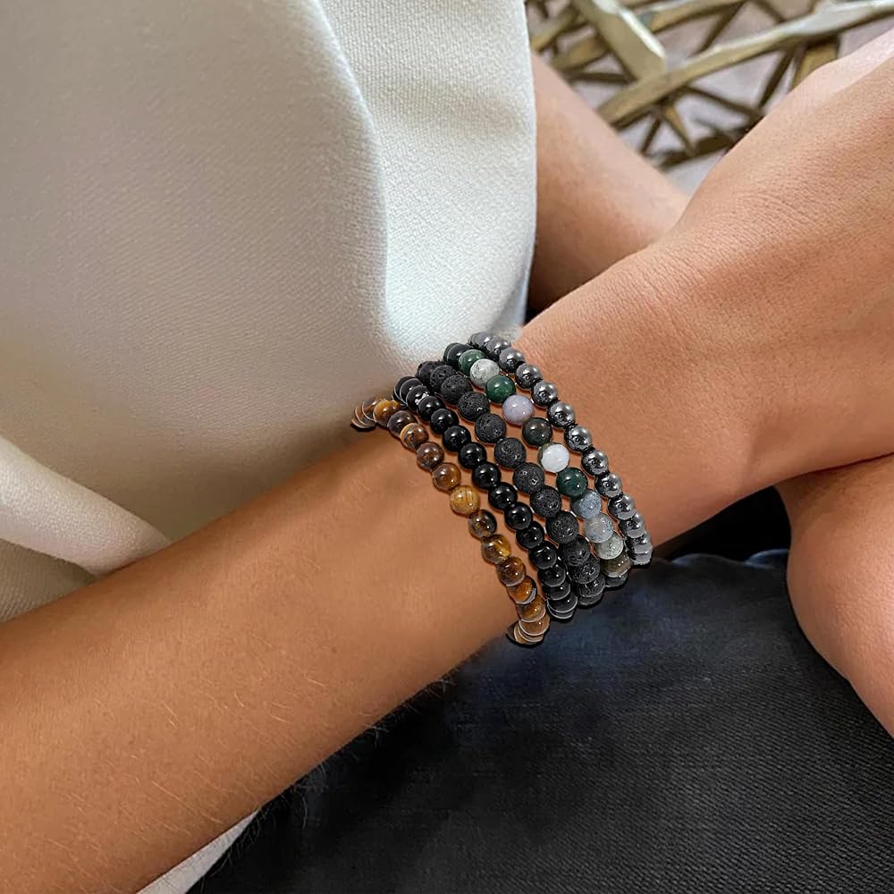 مواد عالية الجودة: أساورنا المطرزة مصنوعة من أحجار شبه ثمينة عالية الجودة، مما يضمن المتانة والارتداء طويل الأمد. يتم اختيار كل خرزة بعناية وربطها معًا لإنشاء سوار جميل وأنيق