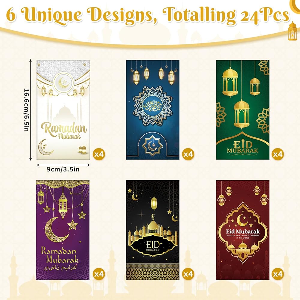 Endless Variety: With 6 styles and 24 pieces, you have options for every recipient and occasion. Cultural Depth: Designs rooted in tradition add emotional weight to your gifts. Premium Durability: High-quality materials ensure long-lasting beauty and functionality. Perfect Fit: The 6.5 x 3.5-inch size accommodates cash, cards, and notes with ease. Versatile Use: Ideal for gifting, decorations, or as thoughtful presents themselves.