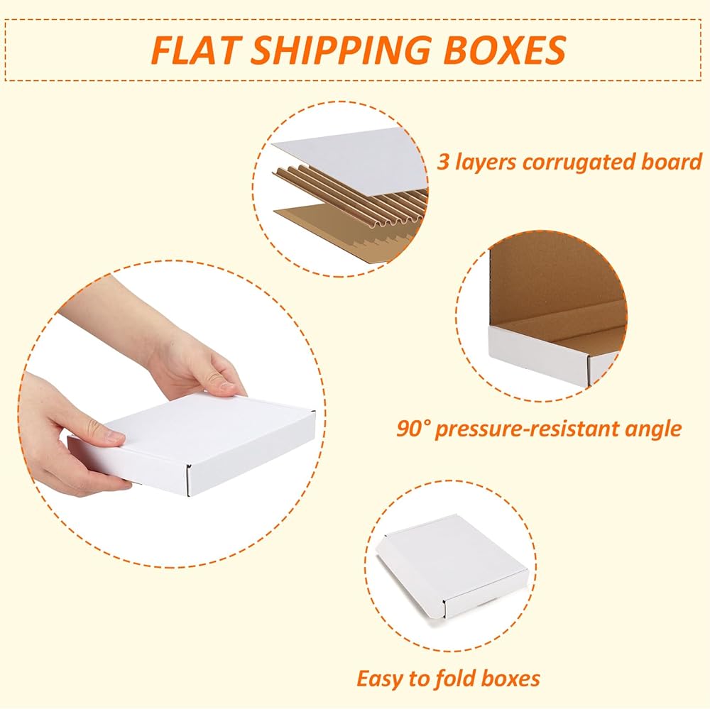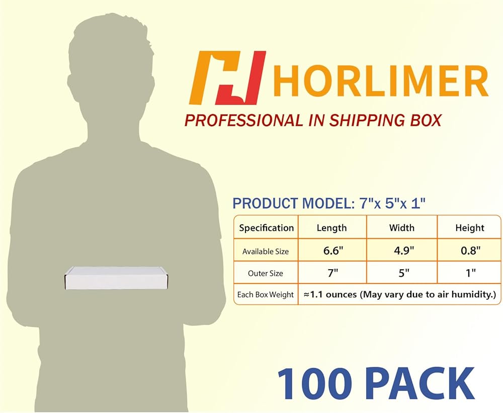 مجموعة صناديق الشحن من HORLIMER مقاس 7 × 5 × 1 مكونة من 100 قطعة، صندوق بريد من الورق المقوى المموج الأبيض لتعبئة الشركات الصغيرة