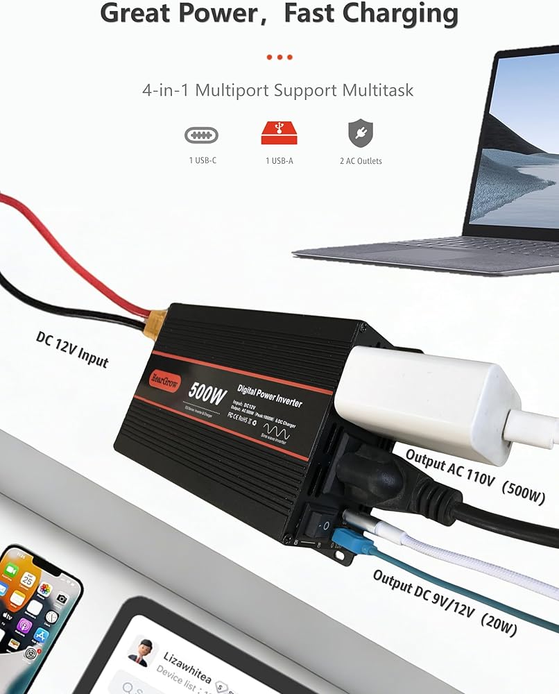 توافق واسع للأجهزة: مثالي لتشغيل مجموعة من الأجهزة ذات تصنيف 500 واط بما في ذلك أجهزة الكمبيوتر المحمولة، وأجهزة تلفزيون LED، والأجهزة اللوحية، والمراوح الكهربائية، ووحدات التحكم في الألعاب، وأجهزة التوجيه، ومسجلات الفيديو الرقمية، وأدوات الطاقة الصغيرة، وأجهزة CPAP، مما يجعلها مثالية للرحلات البرية والتخييم وحالات الطوارئ.
