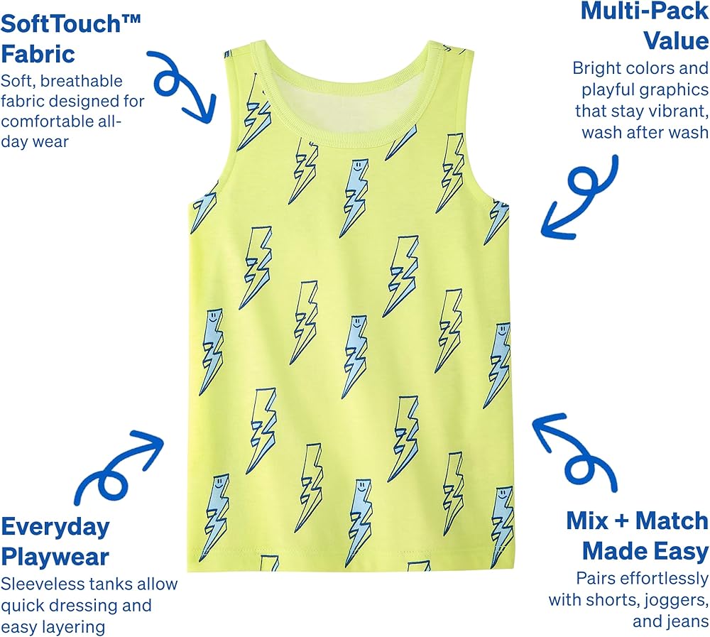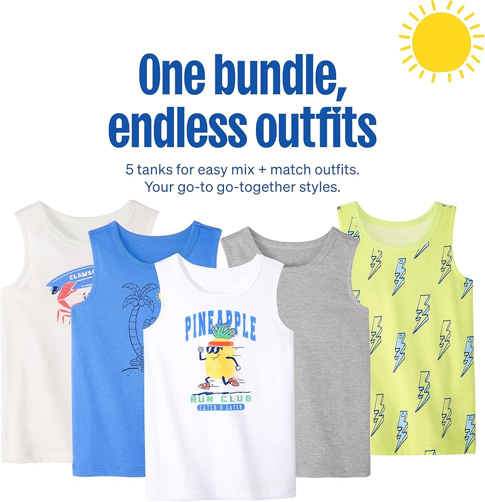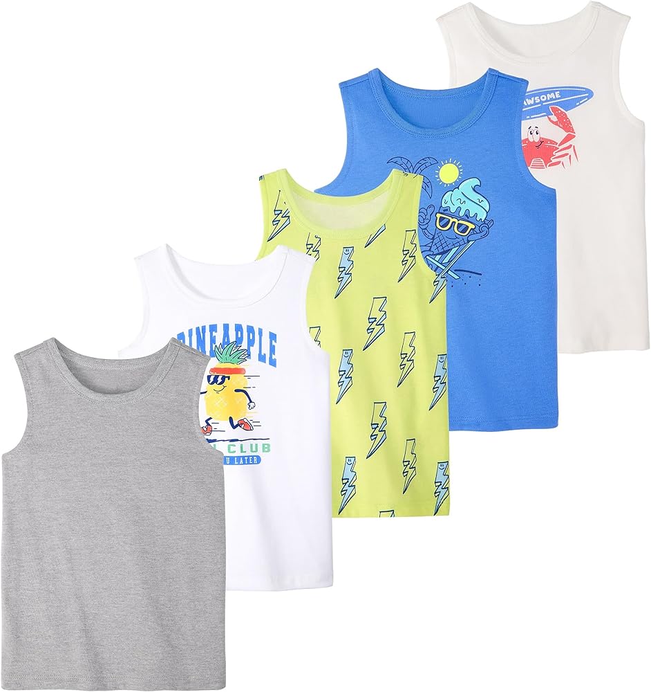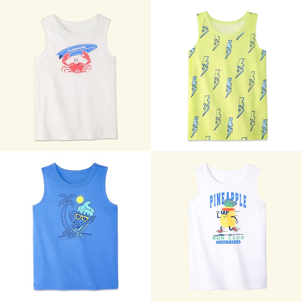 تي شيرتات الشاطئ للأطفال والرضع من Garanimals - تي شيرت بدون أكمام للأطفال - مقاس 6T - أبيض فاتح، أزرق، أصفر، رمادي متوسط، أبيض - 5 قطع
