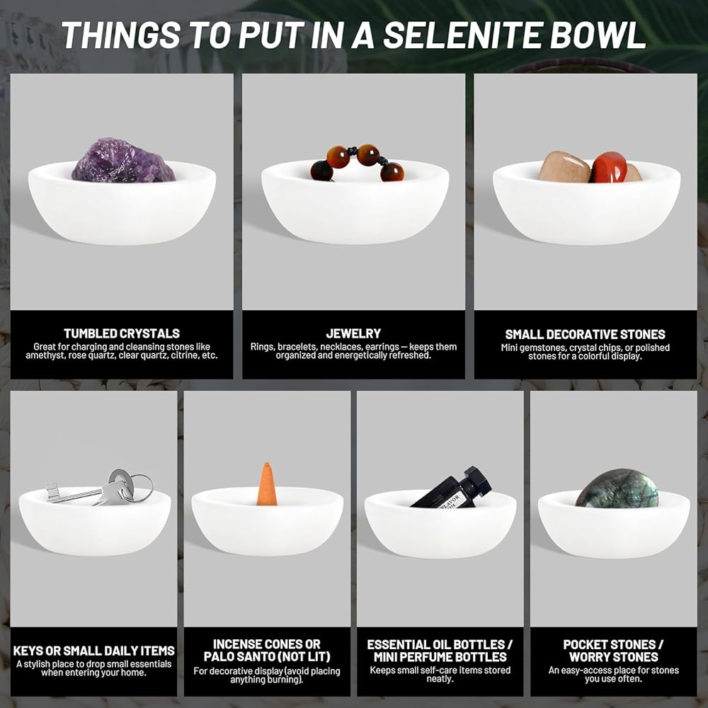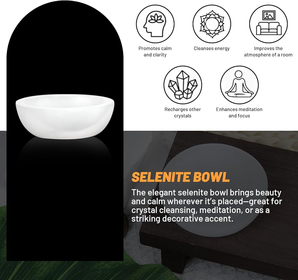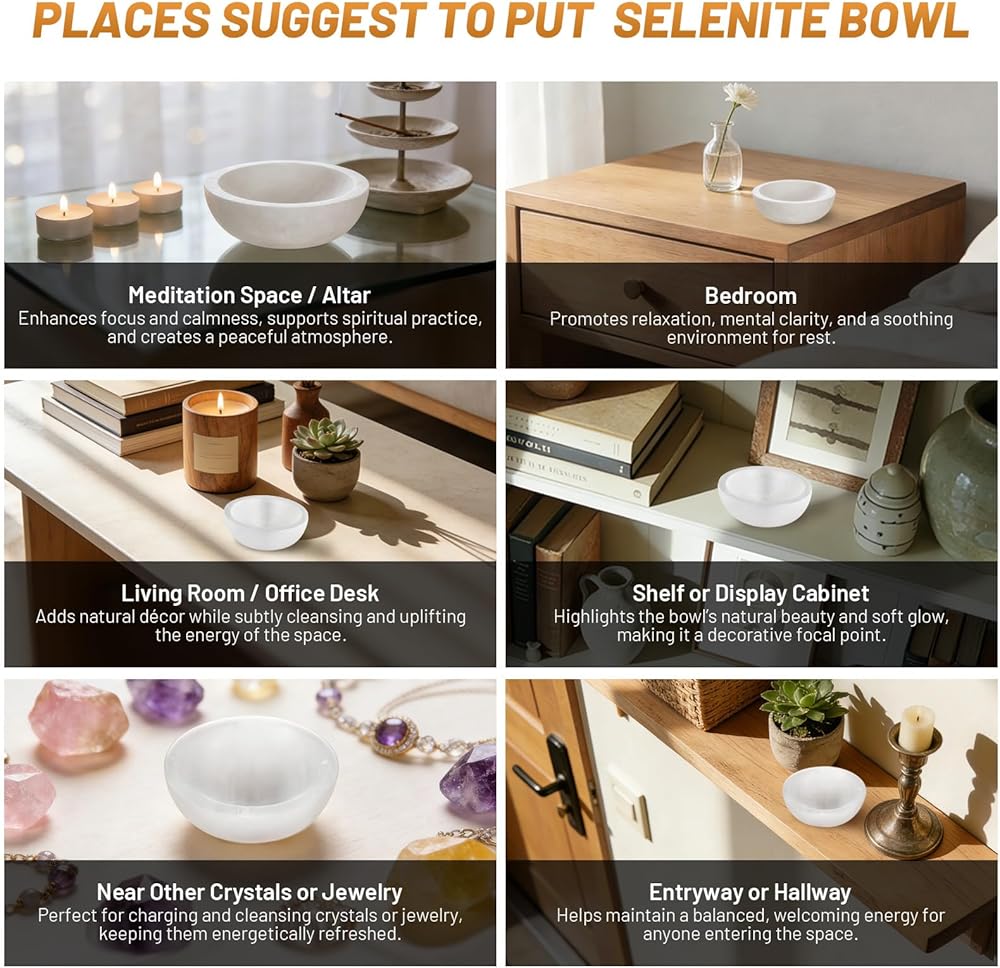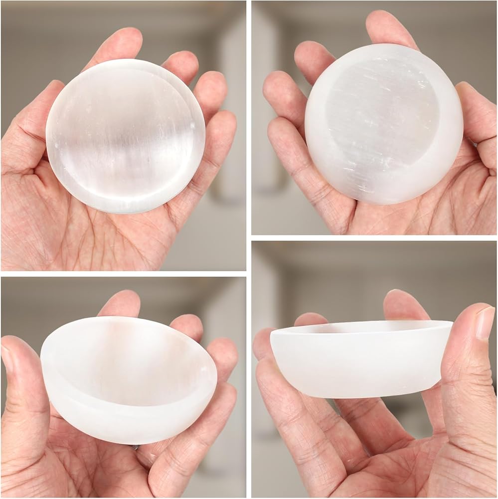 طبيعي 100% مع صناعة يدوية فاخرة----- مصنوع من السيلينيت الطبيعي بنسبة 100%، ومصقول يدويًا لإبراز الملمس الفريد لكل وعاء. يحافظ على الجمال الطبيعي للكريستال مع ضمان المتانة والجاذبية الجمالية.