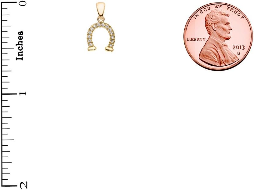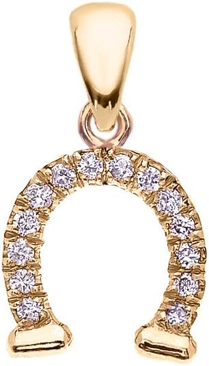 • high polish gold Horseshoe Good Luck pendant necklace studded with 14 diamonds