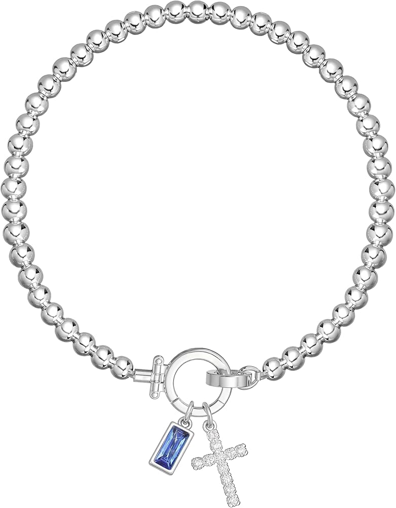 【سوار صليب وحجر ميلاد مخصص】يتميز بحلية متقاطعة أنيقة مقترنة بسحر حجر البخت الشخصي الخاص بك على مجوهرات حجر البخت الفضية. احمل إيمانك واحتفل بشهر ميلادك مع هذا الرمز الهادف للأناقة الذي يذهب أينما كنت.