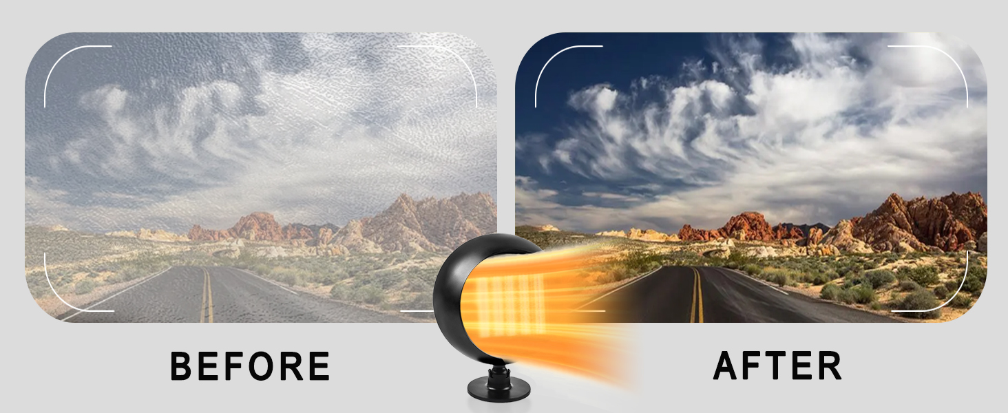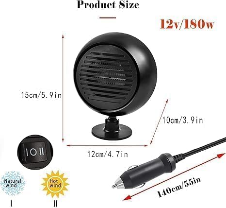 • 【تذويب وإزالة الضباب في وقت قصير】قل وداعًا للنوافذ الضبابية! يقوم هذا السخان بتنظيف الزجاج الأمامي الخاص بك بسرعة ويقلل من الرطوبة الداخلية، مما يمنحك رؤية واضحة وقيادة أكثر أمانًا. قم بتوجيه الفتحات نحو الزجاج الأمامي للحصول على أفضل النتائج.