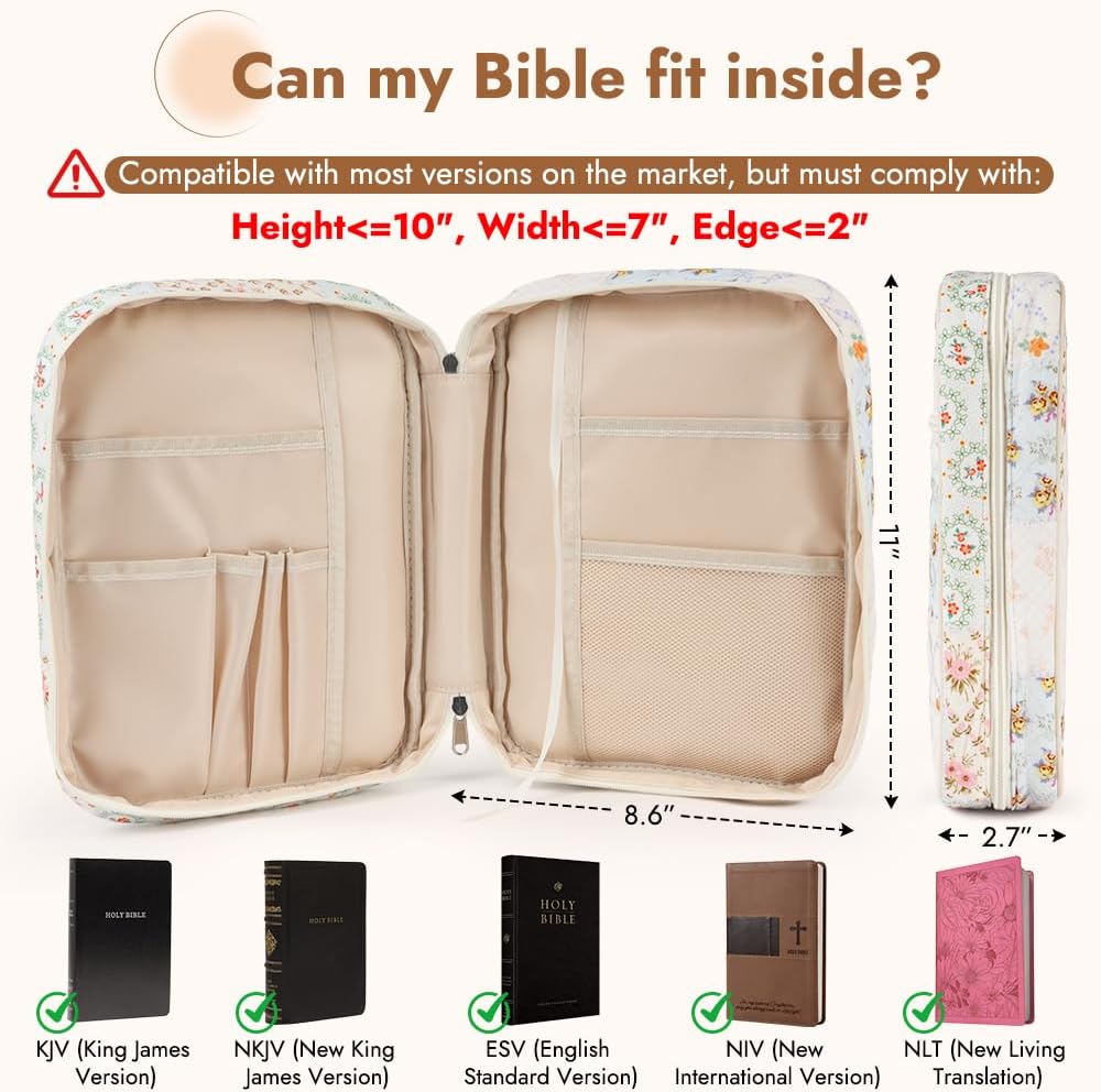 Designed for everyday faith and regular reading, this Bible cover case helps keep your Bible Protected and Organised wherever you go. Sized to fit most medium-sized Bibles, it offers a secure, comfortable fit that's easy to use without squeezing pages or corners.