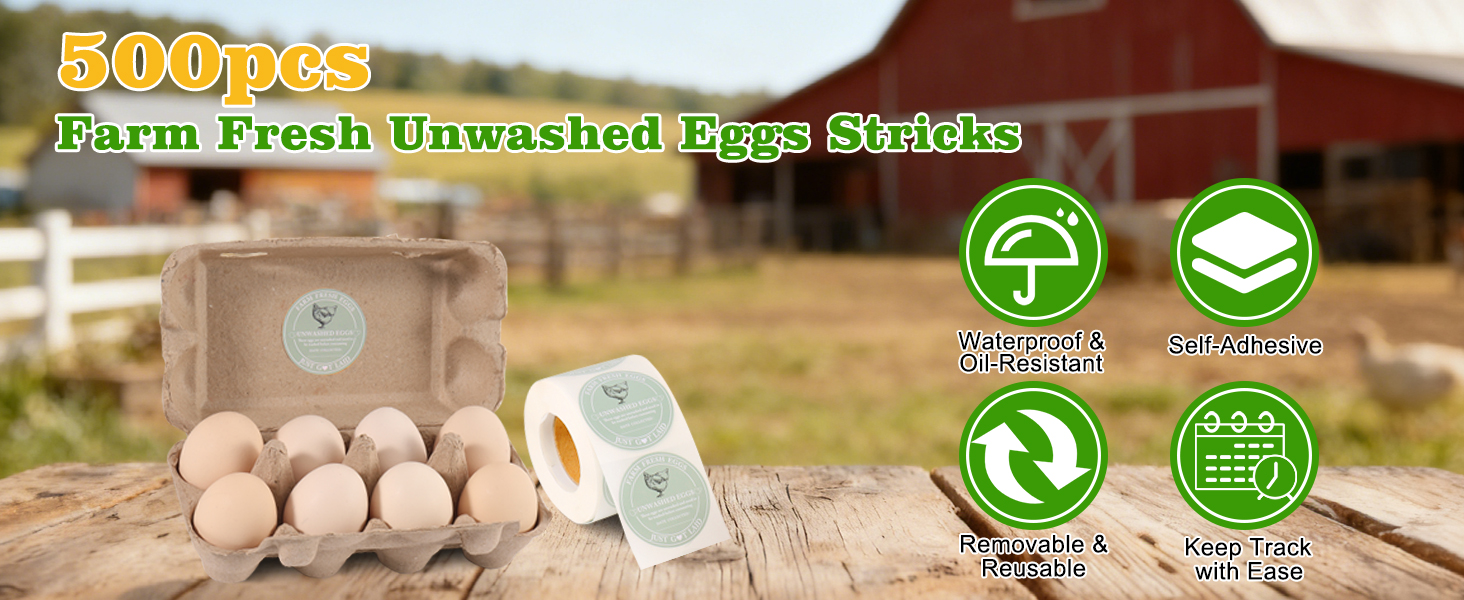 • ملصقات التعامل مع البيض غير المغسول - مثالية لتنظيم الحظائر، أو العلامات التجارية للصناديق، أو لافتات السوق، أو الحرف اليدوية الريفية. متوافقة مع إرشادات وضع العلامات التابعة لوزارة الزراعة الأمريكية للمزارع الصغيرة، حتى تتمكن من البيع بثقة