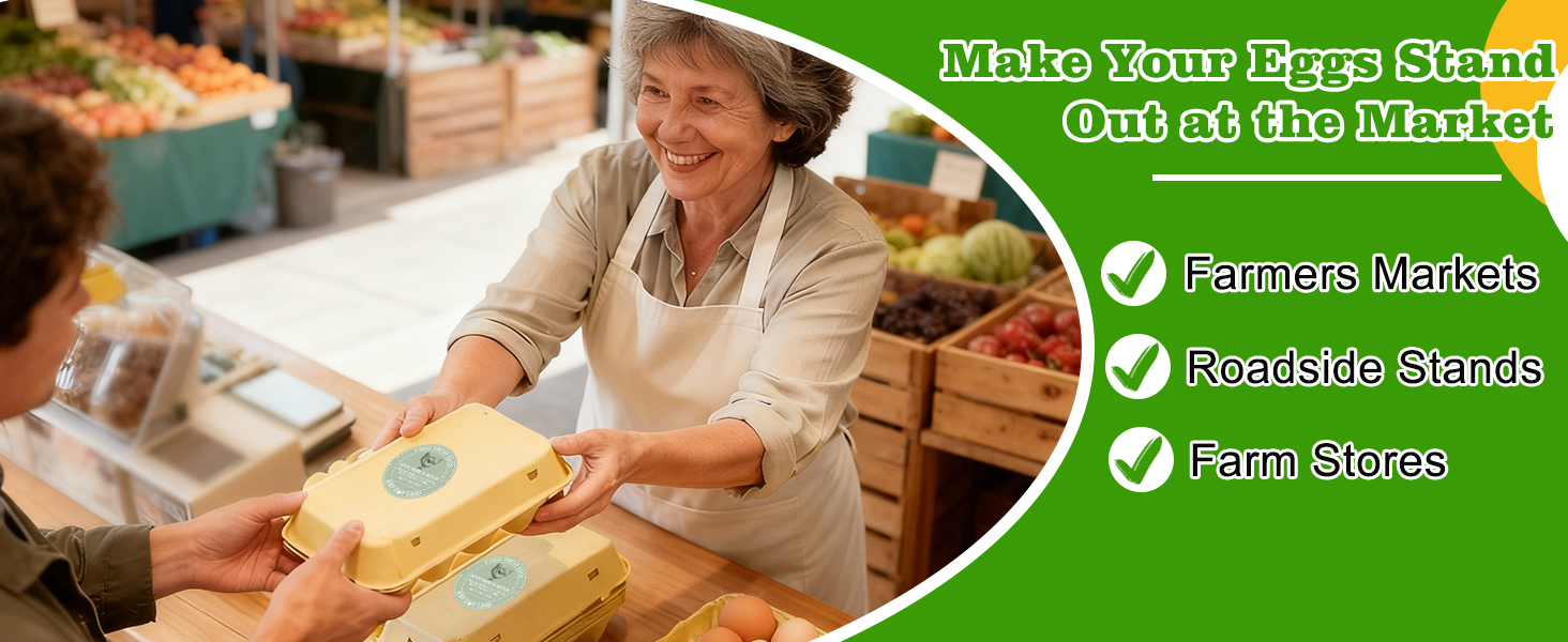 • ملصقات التواصل الخاصة بالبيض الطازج - توقف المحادثة "غير المغسولة" قبل أن تبدأ. "اعتدت أن أشرح ذلك في كل مرة - الآن أضع هذا الملصق فقط." يوفر الوقت ويثقف العملاء ويجعل مزرعتك تبدو احترافية