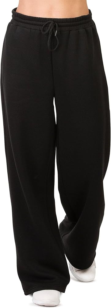 Soft fleece wide leg sweatpants with an elastic drawstring waistband and side pockets, blending comfort and style for lounging or casual wear
