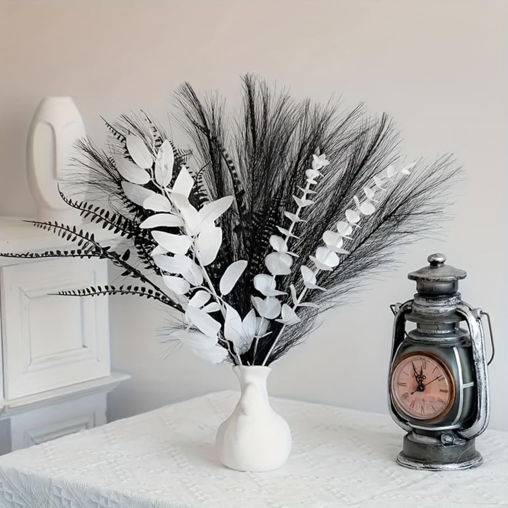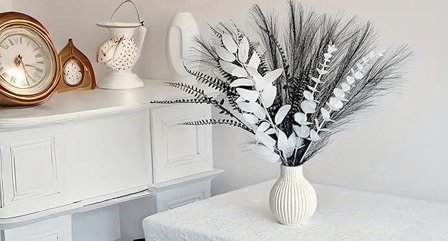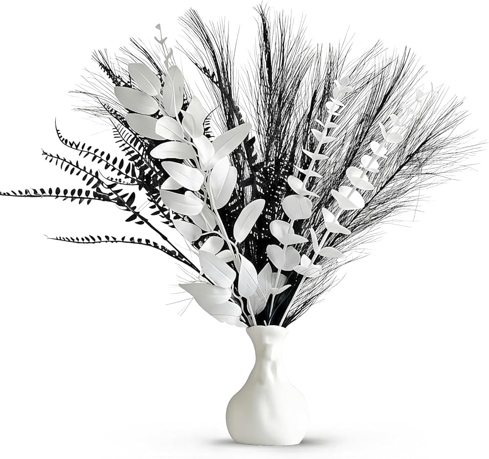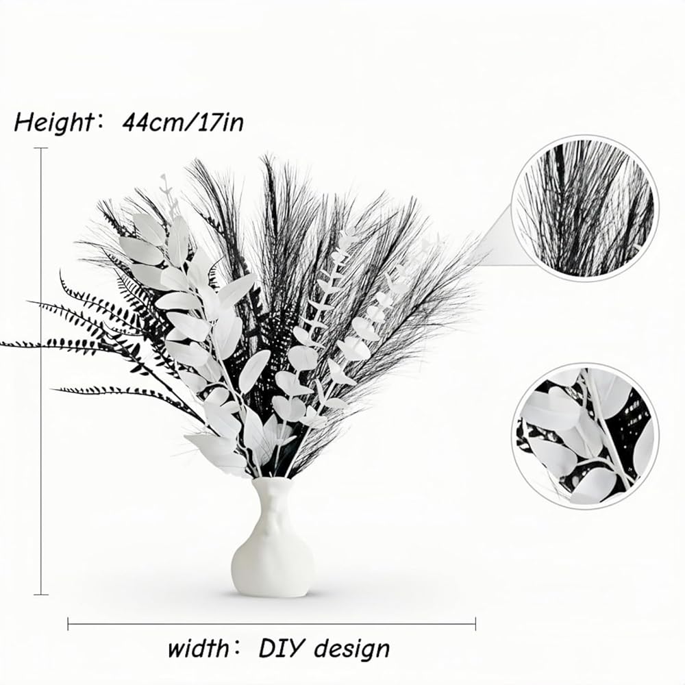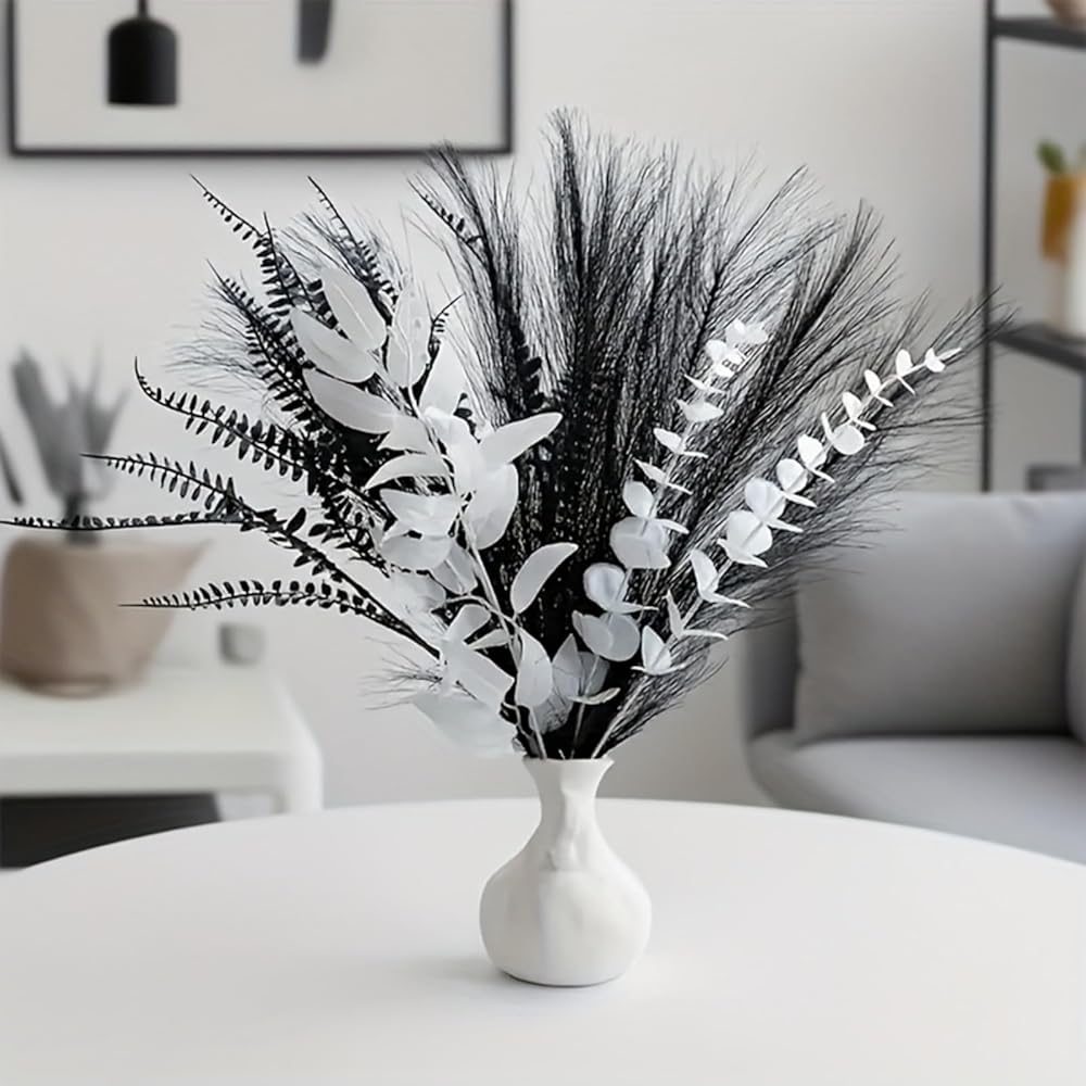 نمط التصميم: ستضيف هذه الزخرفة المذهلة من الزهور الاصطناعية باللونين الأبيض والأسود سحرًا فريدًا إلى ديكور منزلك. إنه يلتزم بالأسلوب الاسكندنافي البسيط، ويجمع بمهارة بين النباتات السوداء والبيضاء المتناقضة مع الزهور الرائعة لخلق تأثير بصري بسيط ولكنه أنيق.