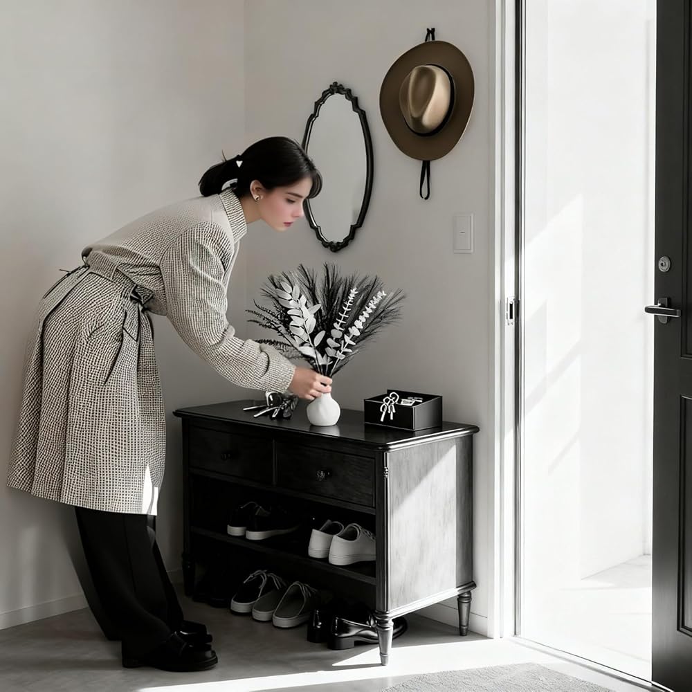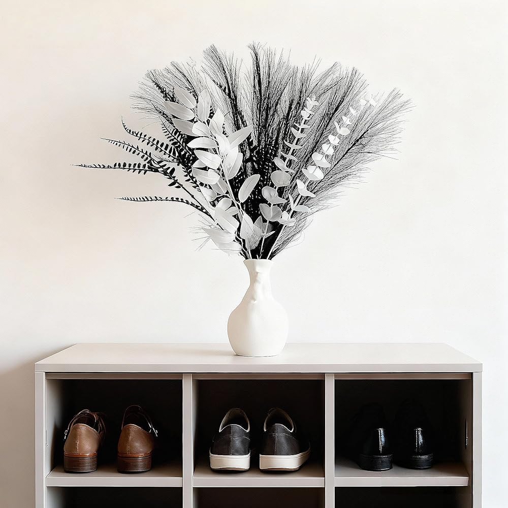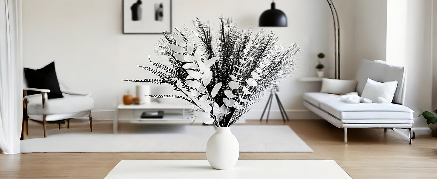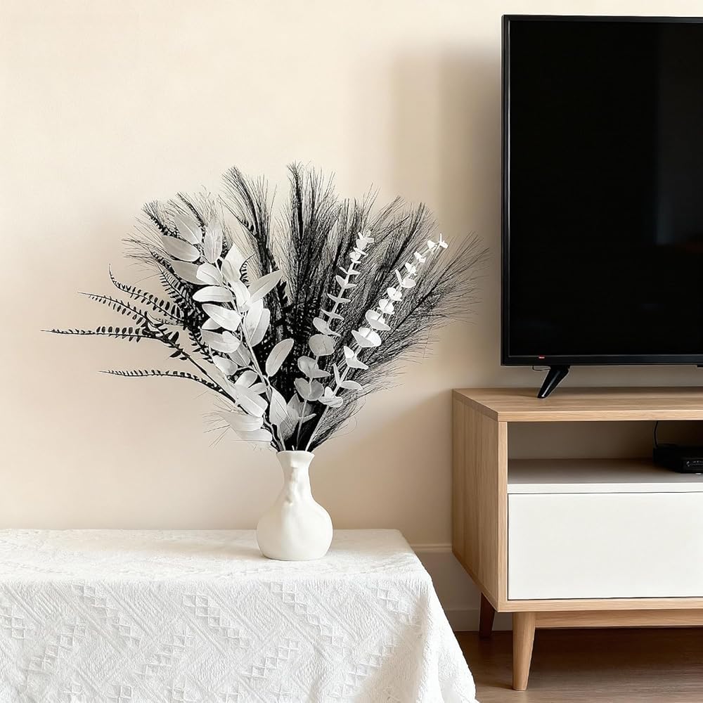 نمط التصميم: ستضيف هذه الزخرفة المذهلة من الزهور الاصطناعية باللونين الأبيض والأسود سحرًا فريدًا إلى ديكور منزلك. إنه يلتزم بالأسلوب الاسكندنافي البسيط، ويجمع بمهارة بين النباتات السوداء والبيضاء المتناقضة مع الزهور الرائعة لخلق تأثير بصري بسيط ولكنه أنيق.