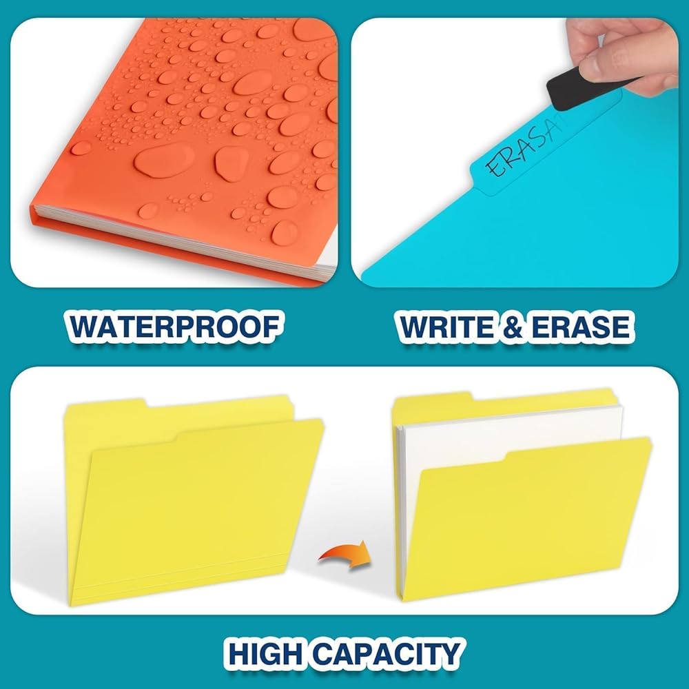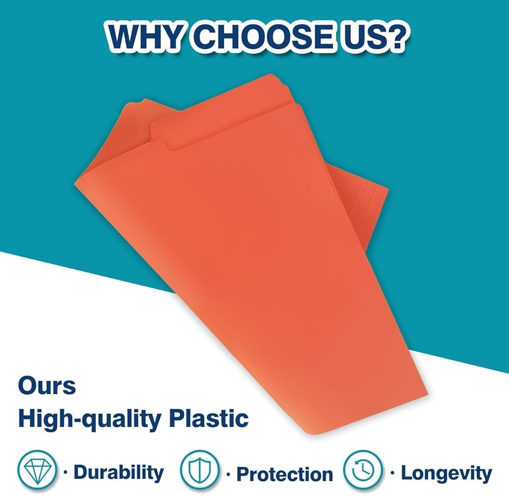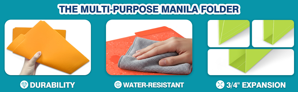 متانة فائقة: مجلدات الملفات البلاستيكية مقاومة للماء والتمزق، هيكل مجلد البوليستر المقوى أقوى من مجلدات ملفات مانيلا الورقية. يضمن أن تحافظ مجلداتك على شكلها وسلامتها
