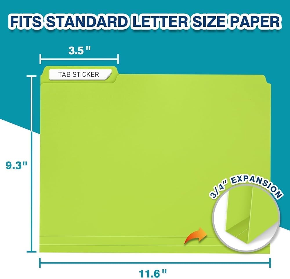 حجم الحروف القياسي: مصمم لحمل المستندات مقاس 8.5 بوصة × 11 بوصة، ويستخدم بشكل متوافق مع درج الملفات القياسي أو رف مجلد الملفات أو مجلدات الملفات المعلقة