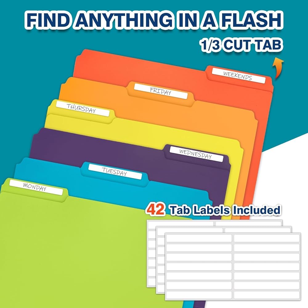 الكتابة والمسح وإعادة الاستخدام: عروات 1/3 قطع في أوضاع متنوعة متداخلة من اليسار إلى اليمين للحصول على رؤية مثالية في نظام حفظ الملفات الرأسي أو الجانبي. (يتضمن 42 ملصقًا فارغًا للحصول على مظهر أنيق واحترافي)