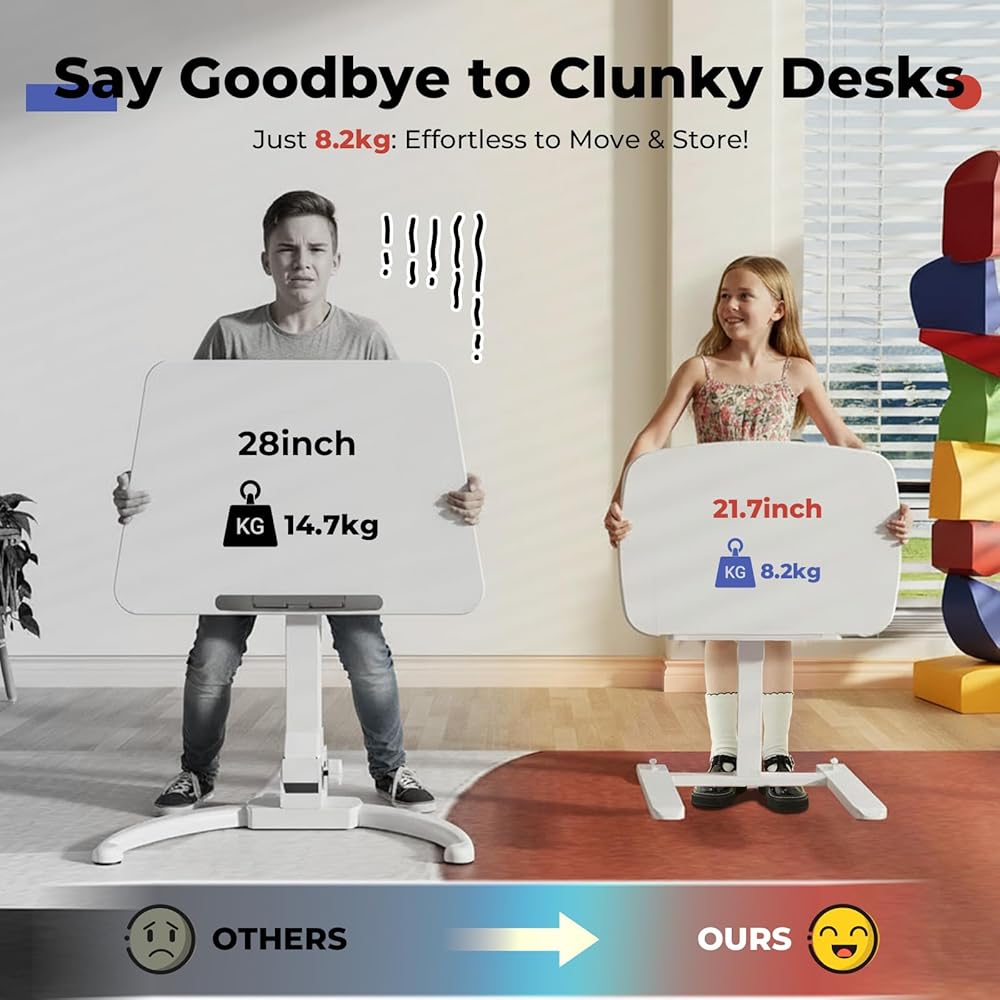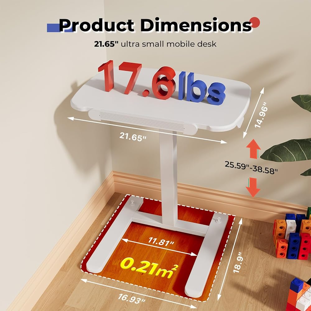 مكتب صغير الحجم وخفيف الوزن: مزود بسطح طاولة MDF مقاس 21.65 بوصة طول × 15 بوصة عرض، وهو أصغر بنسبة 33% من المعيار القياسي، ويمكن وضعه تحت المكاتب العادية كطاولة جانبية. يزن 8.2 كجم فقط، مما يجعله سهل الحمل - ولا يسبب أي متاعب كبيرة للمساحات الصغيرة أو مساكن الطلبة أو المكاتب