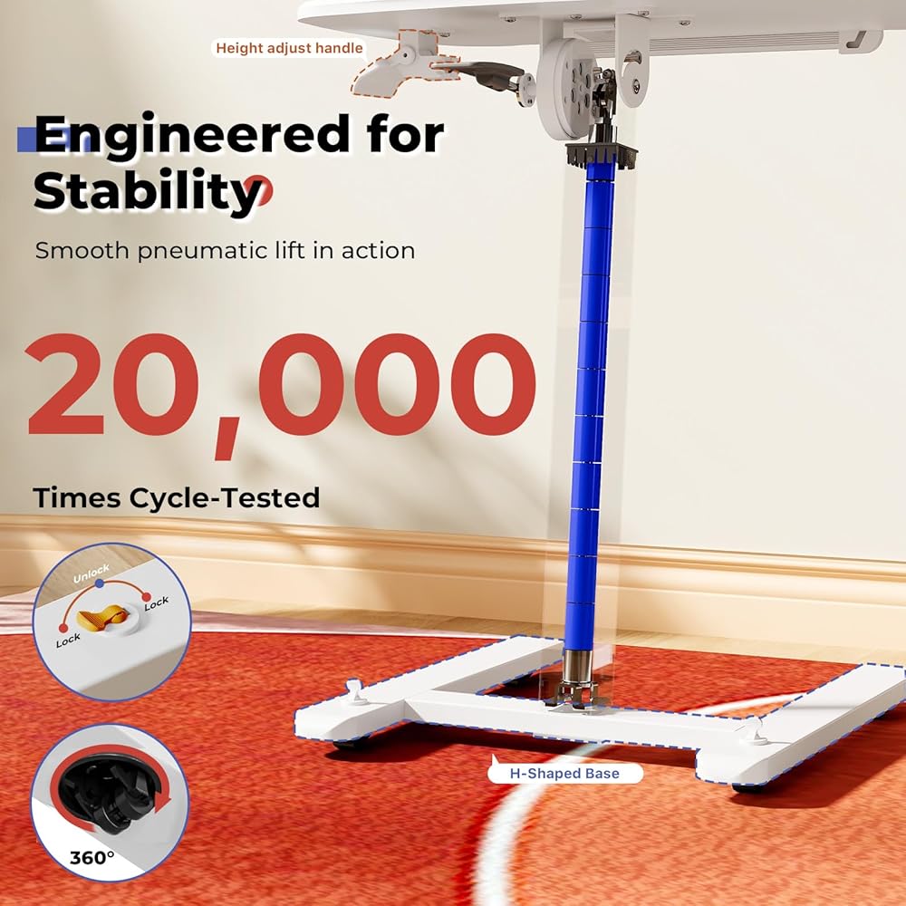 تعديل الارتفاع بسلاسة في متناول يدك: لا مزيد من الانحناء لتحريف المقابض الميكانيكية! قم بتعديل ارتفاع طاولة زنبرك الغاز هذه بسهولة باستخدام المقبض، ويتميز سطح الطاولة بتعديل زاوية بدون خطوات - لا توجد أوضاع ثابتة محدودة