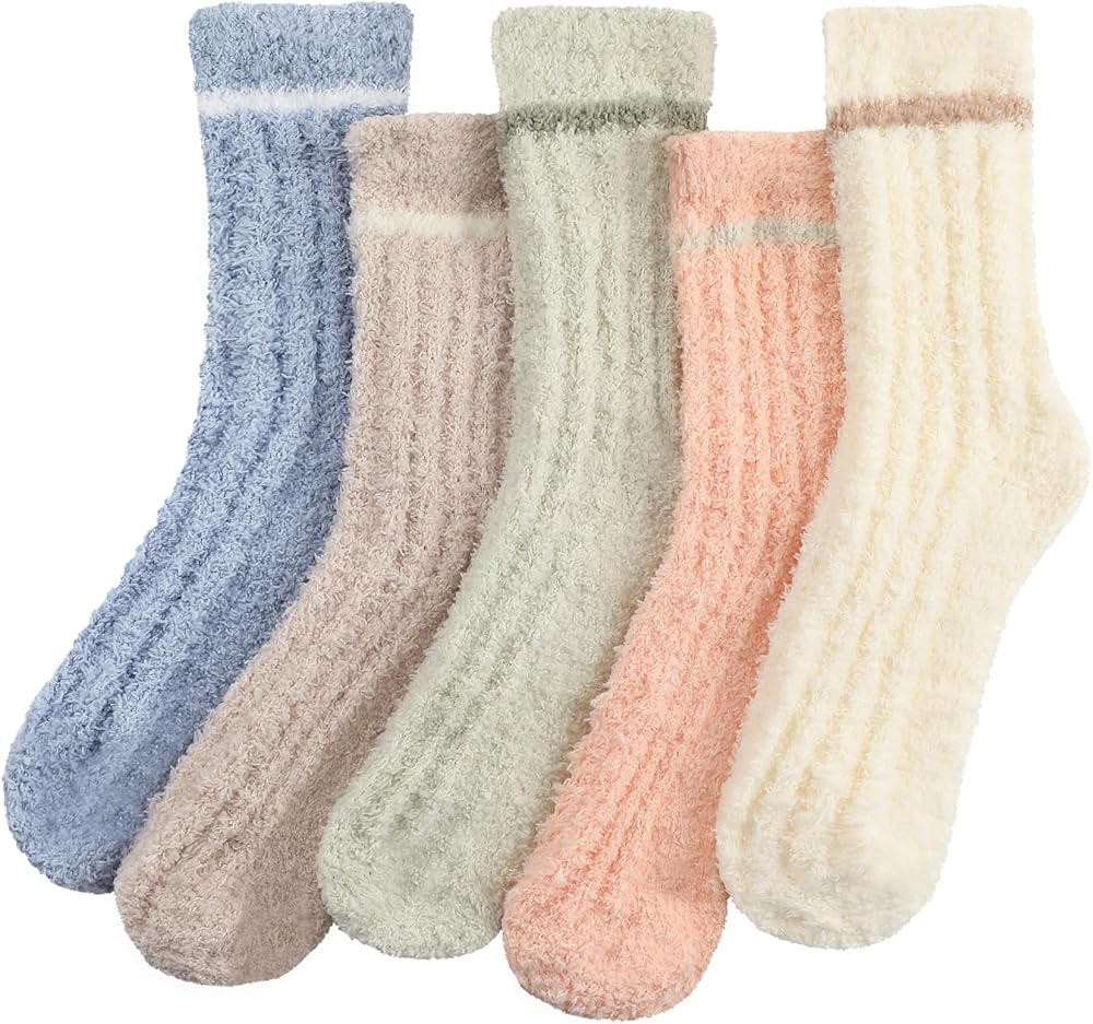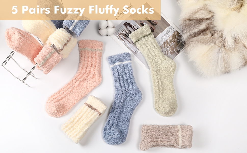Great Presents Choice - Cozy fluffy socks will bright your life, and make you look more adorable and stylish. Warm fuzzy socks with 5 pairs can easily match with your daily outfits, so an excellent choice for you