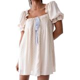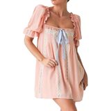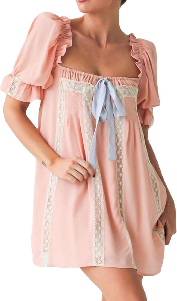 💮 تصميم أنيق - تتميز مجموعة بيجامات جيغنهام النسائية هذه بفستان قصير مطبوع عليه زهور Y2K، فستان قصير بأكمام منتفخة ورقبة مربعة، فستان شمسي فضفاض لقضاء العطلات على الشاطئ للنساء، خط عنق مكشكش حالم، خط عنق مستقيم مرن، أكمام قصيرة منتفخة مرنة، تفاصيل ظهر برباط، ظهر مفتوح مثير، ربطة عنق رومانسية من الأمام، يمكن ارتداؤه كفستان قصير بدون أكتاف. فستان بلوفر للسيدات، سهل الارتداء والخلع.