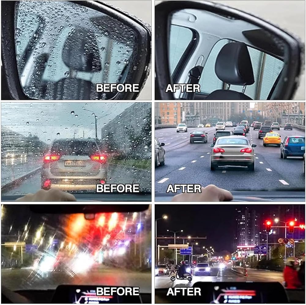 التوافق مع الأسطح المتعددة: منتجنا متعدد الاستخدامات وفعال ليس فقط على الزجاج الأمامي للسيارة ولكن أيضًا على الأسطح الزجاجية المختلفة بما في ذلك النوافذ والمرايا وأبواب الدش. فهو يصد المطر والماء بكفاءة، مما يعزز الرؤية ويضمن الوضوح التام.