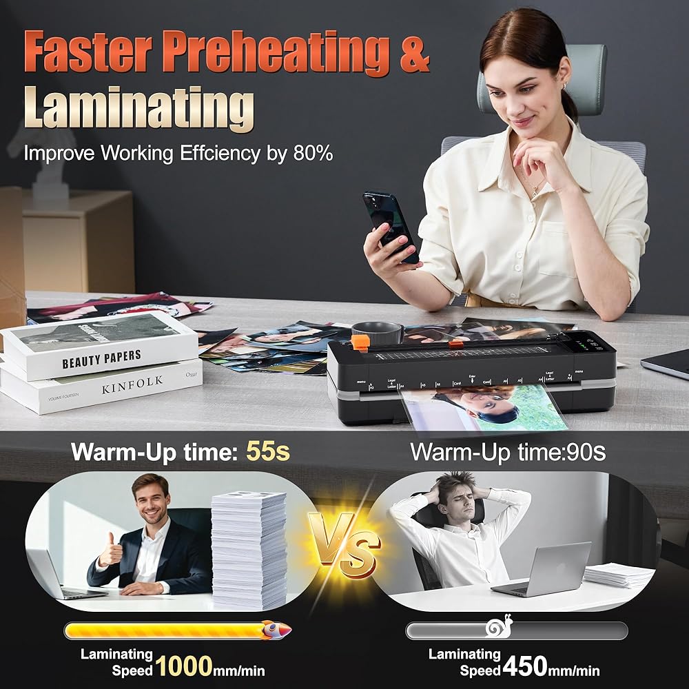 【𝐇𝐢𝐠𝐡-𝐄𝐟𝐟𝐢𝐜𝐢𝐞𝐧𝐜𝐲 𝐏𝐞𝐫𝐟𝐨𝐫𝐦𝐚𝐧𝐜𝐞 𝐰𝐢𝐭𝐡 𝟓𝟓-𝐒𝐞𝐜𝐨𝐧𝐝 𝐅𝐚𝐬𝐭 𝐖𝐚𝐫𝐦-𝐔𝐩】قم بزيادة الإنتاجية إلى أقصى حد باستخدام آلة التغليف الحراري هذه. ويتميز بالإحماء السريع لمدة 55 ثانية ويحقق سرعة ملحوظة تبلغ 1000 ملم في الدقيقة. يمكّنها هذا الأداء القوي من تصفيح ورقة واحدة بحجم 3 مل مقاس A4 في حوالي 17 ثانية فقط. مثالية للتعامل بكفاءة مع الدفعات الكبيرة في المكاتب والفصول الدراسية المزدحمة، توفر آلة التغليف هذه سرعة استثنائية وجودة ثابتة.
