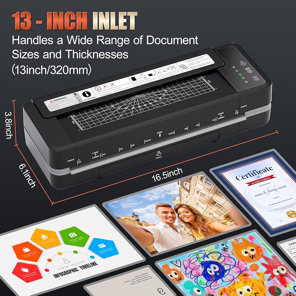 【𝐔𝐧𝐦𝐚𝐭𝐜𝐡𝐞𝐝 𝟑-𝟏𝟎 𝐌𝐢𝐥 𝐓𝐡𝐢𝐜𝐤𝐧𝐞𝐬𝐬 & ماكينة تغليف متعددة الاستخدامات تتعامل مع أي مشروع بسهولة. وهو يدعم النطاق الكامل لسمك الحقيبة من 3 إلى 10 مل، مما يسمح لك بتصفيح الصور الدقيقة والهويات القوية وأغطية القائمة المتينة. يستوعب المدخل الواسع مقاس 13 بوصة الموجود في ماكينة التغليف هذه كل شيء بدءًا من البطاقات الصغيرة وحتى الملصقات الكبيرة مقاس A3 أو 11 × 17 بوصة، مما يجعلها حلاً شاملاً للمكاتب والمدارس والاستوديوهات.