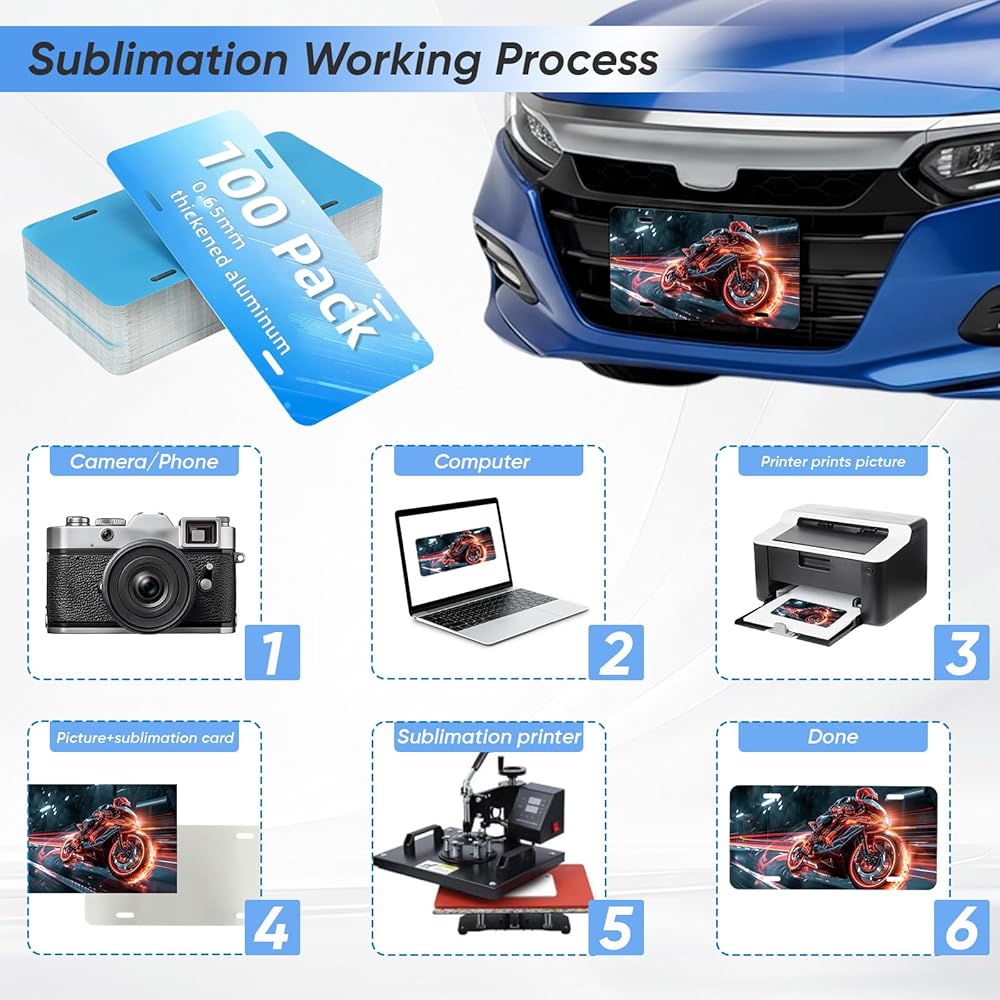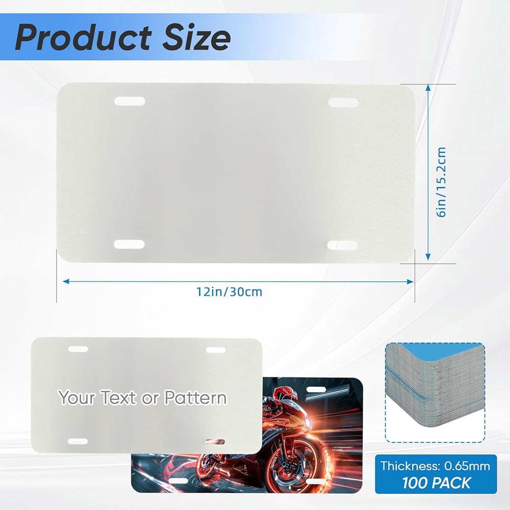 • سوف تحصل على: 100 قطعة من لوحة الترخيص البيضاء بالتسامي، مقاس 6 بوصة × 12 بوصة × 0.65 مم. كافية لتصميم لوحات ترخيص الألومنيوم الخاصة بك، وديكور المنزل الإبداعي، ولافتات الأحداث