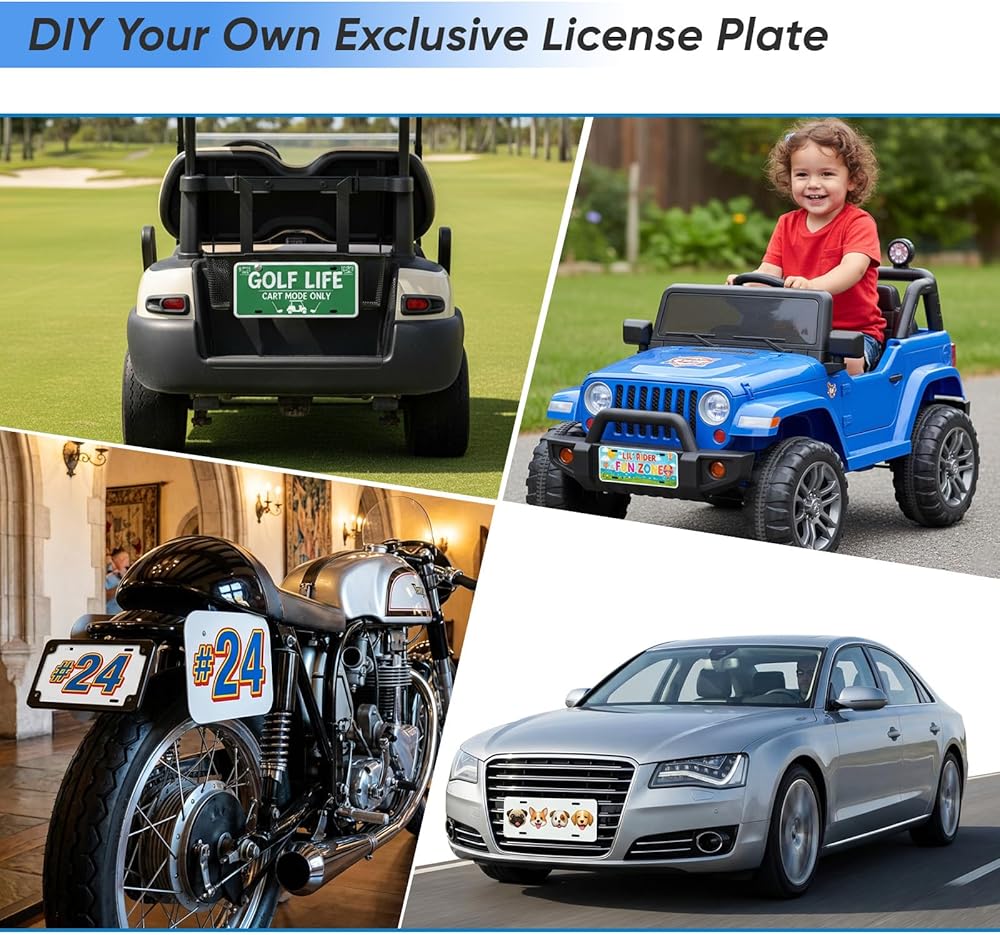 • هدية إبداعية مثالية: قم بتخصيص صور لا تُنسى بتصميمات مخصصة - عملية ومليئة بالشخصية. لوحة الترخيص مثالية لعشاق السيارات ومحبي الأعمال اليدوية، استخدمها لإنشاء هدايا لا تُنسى